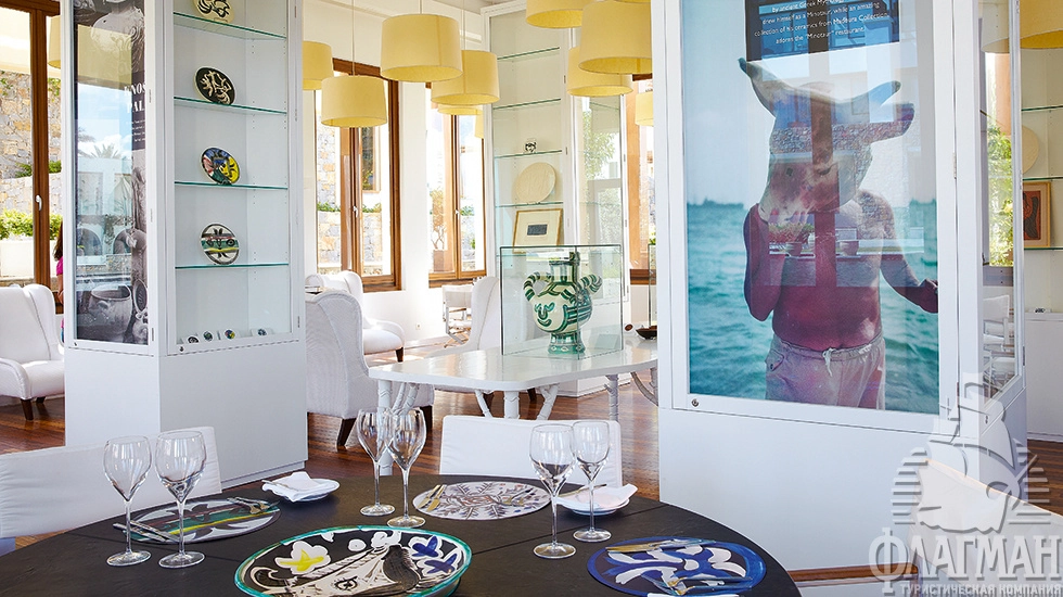 - Grand Royal residence SF with two private heated pools & extensive garden (находится на частном пляже комплекса вилл, с видом на море, первая линия, состоит из двух вилл и виллы-пещеры, отделанной природным камнем, индивидуальный двор (1040 м2), 2 бассейна с подогревом (каждый 23 м2), джакузи, сауна, парковая зона, макс. 6 чел., 360 м2).