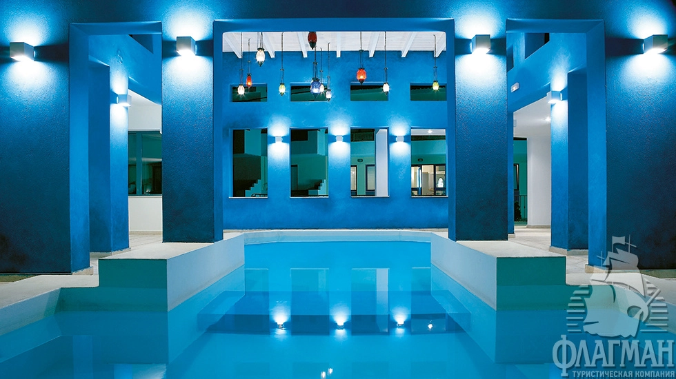 - крытые бассейны: 1 (частично крытый SPA-бассейн с пресной водой, подогревается в апреле и октябре, 26 м2, глубина 1,10 м)