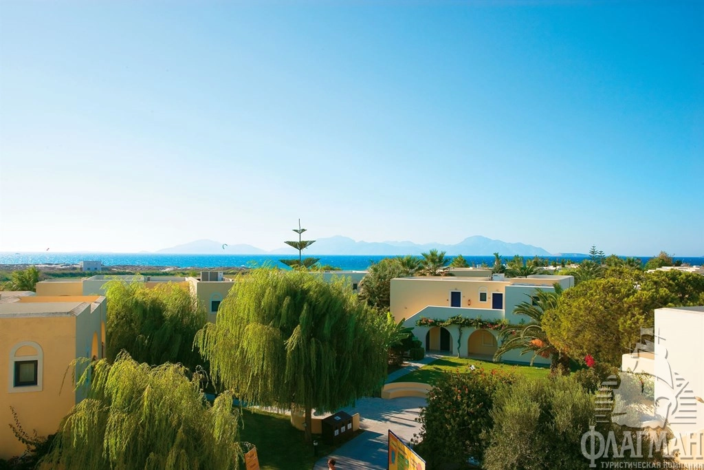В 17 км от города Кос, в 15 км от аэропорта, на берегу моря, в 2 км от рыбацкой деревни Мармари.