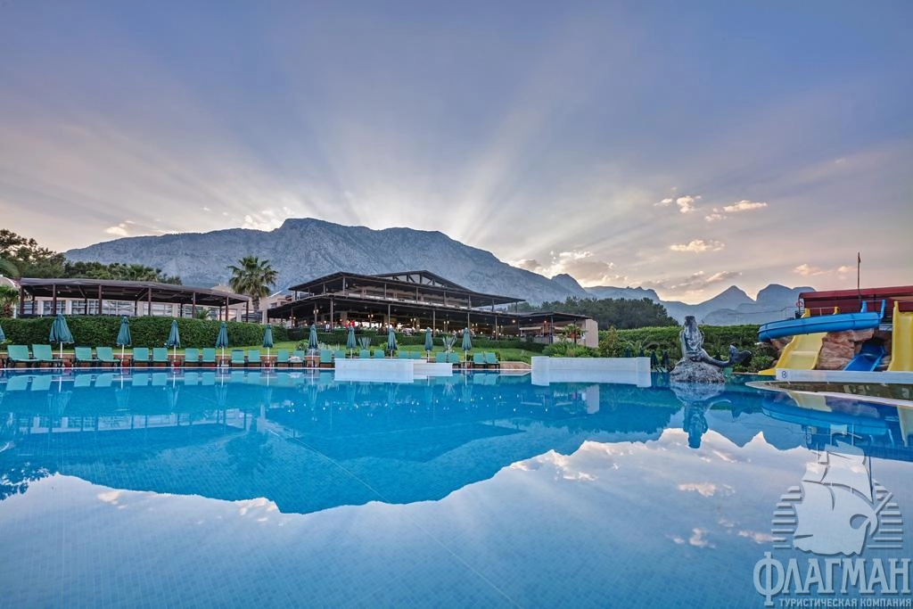 Расположен в 40 км от аэропорта г. Анталья, в 15 км от г. Кемер, в поселке Бельдиби, на берегу моря.