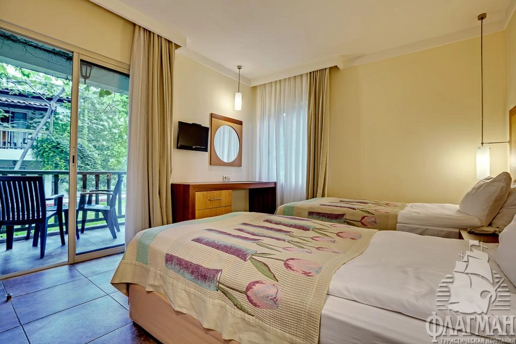 - 18 standard eco room (находятся в самых дальних точках от пляжа и бассейнов, некоторые номера без определённого вида, макс. 3+инф. чел., 26–32 м2);