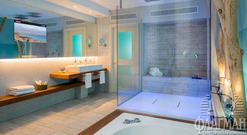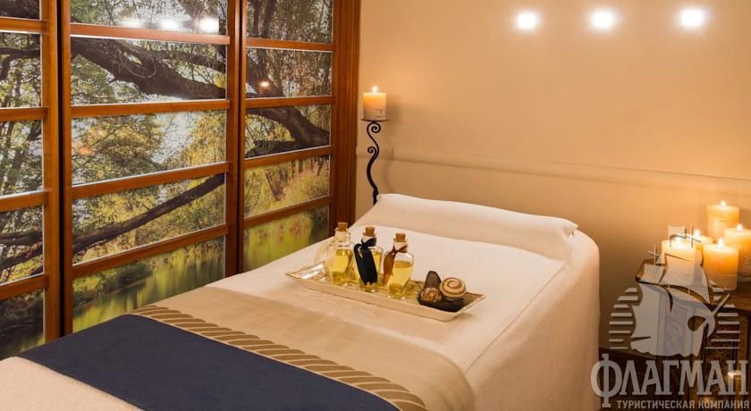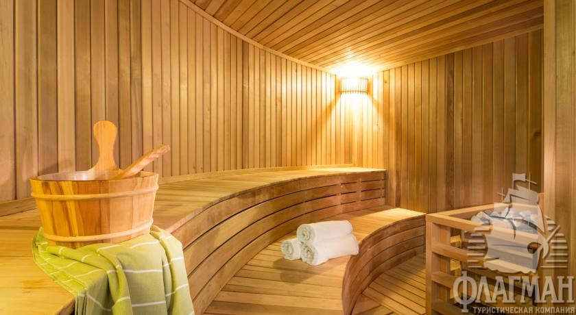 - SPA-центр: тренажерный зал Gladiator с современным оборудованием, открытый бассейн, закрытый бассейн под куполом, открытый бассейн c морской и минеральной водой, бассейн с гидромассажем, каскады водопадов горячей и холодной воды, сухие и влажные сауны, площадка для занятий аэробикой, центры лечебной косметики, грязевые процедуры, массажи, бар с фруктовыми коктейлями, оздоровительные программы по релаксации, антистресс, антицеллюлитные программы