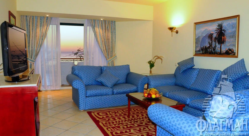 - Junior Suite (garden view, макс. 3+2/4 чел., спальня (с дверью), гостиная, ванна, 89 м2)