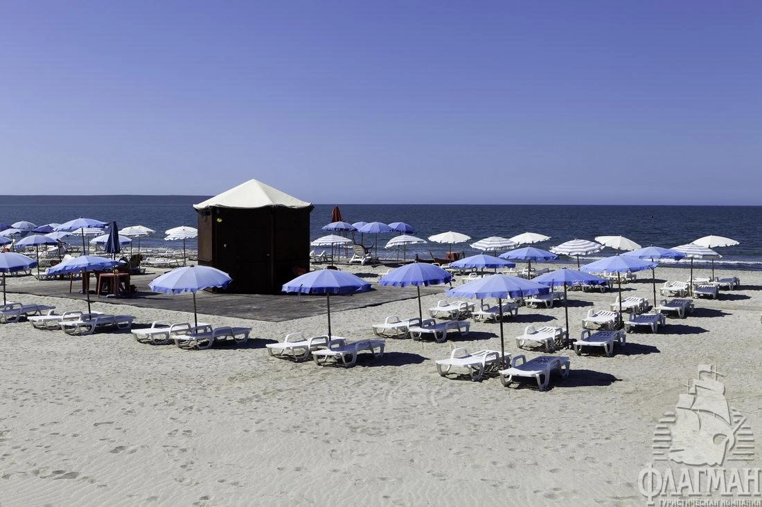 - на пляже зонтики, шезлонги: бесплатно