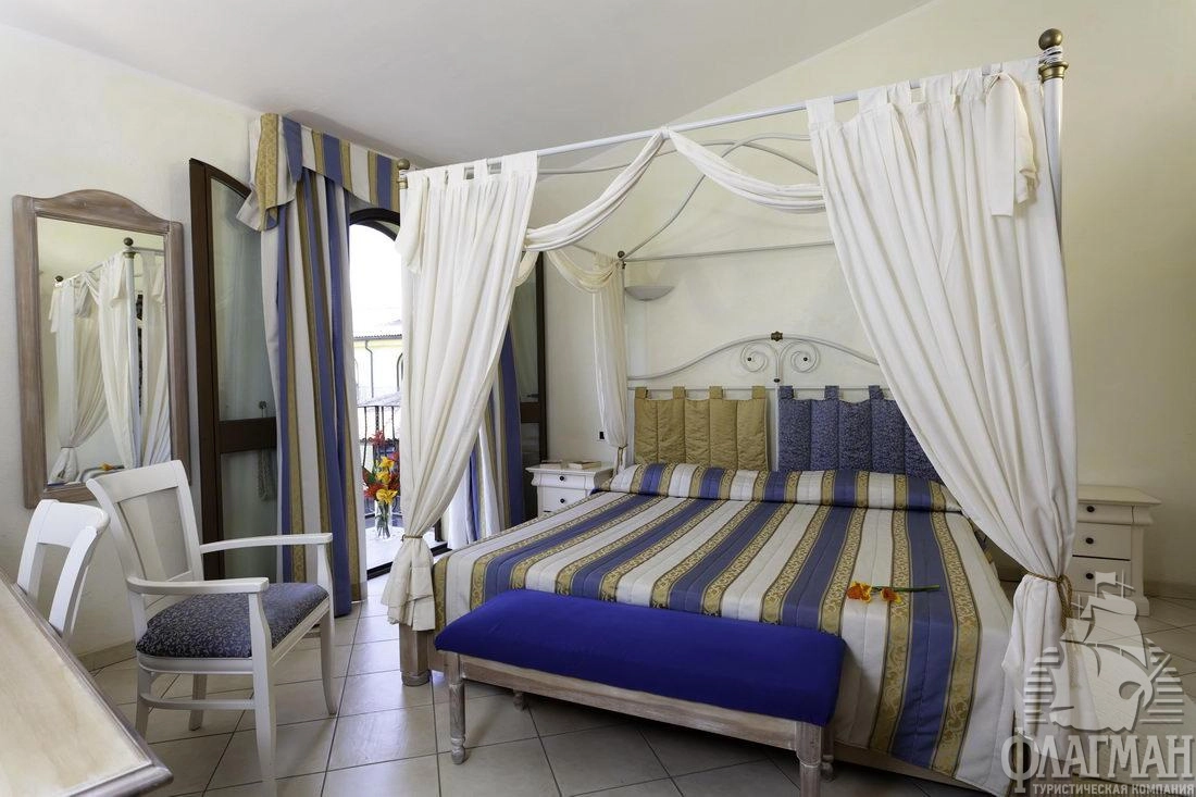 Отель состоит из трех 2-этажных основных зданий, оформленных в сардском стиле: Castello, Medar, Ribot. Также недалеко от корпусов есть 58 коттеджей двух типов: однокомнатные и двухкомнатные.