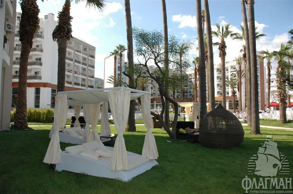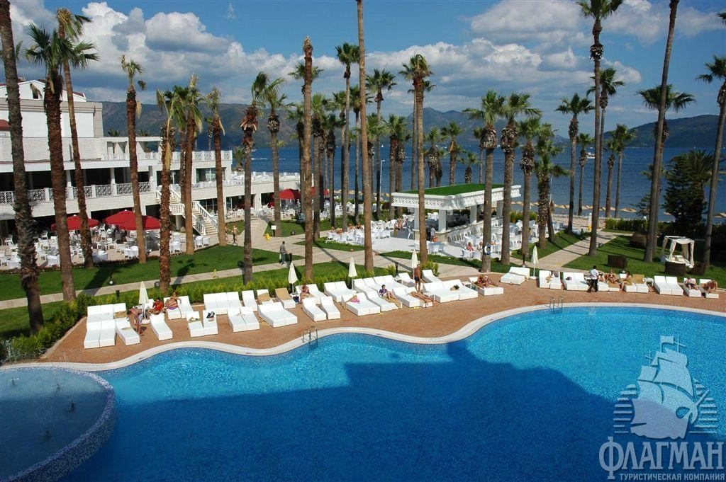 Расположен в 110 км от аэропорта г. Даламан, в 2,5 км от центра г. Мармарис, на берегу моря.