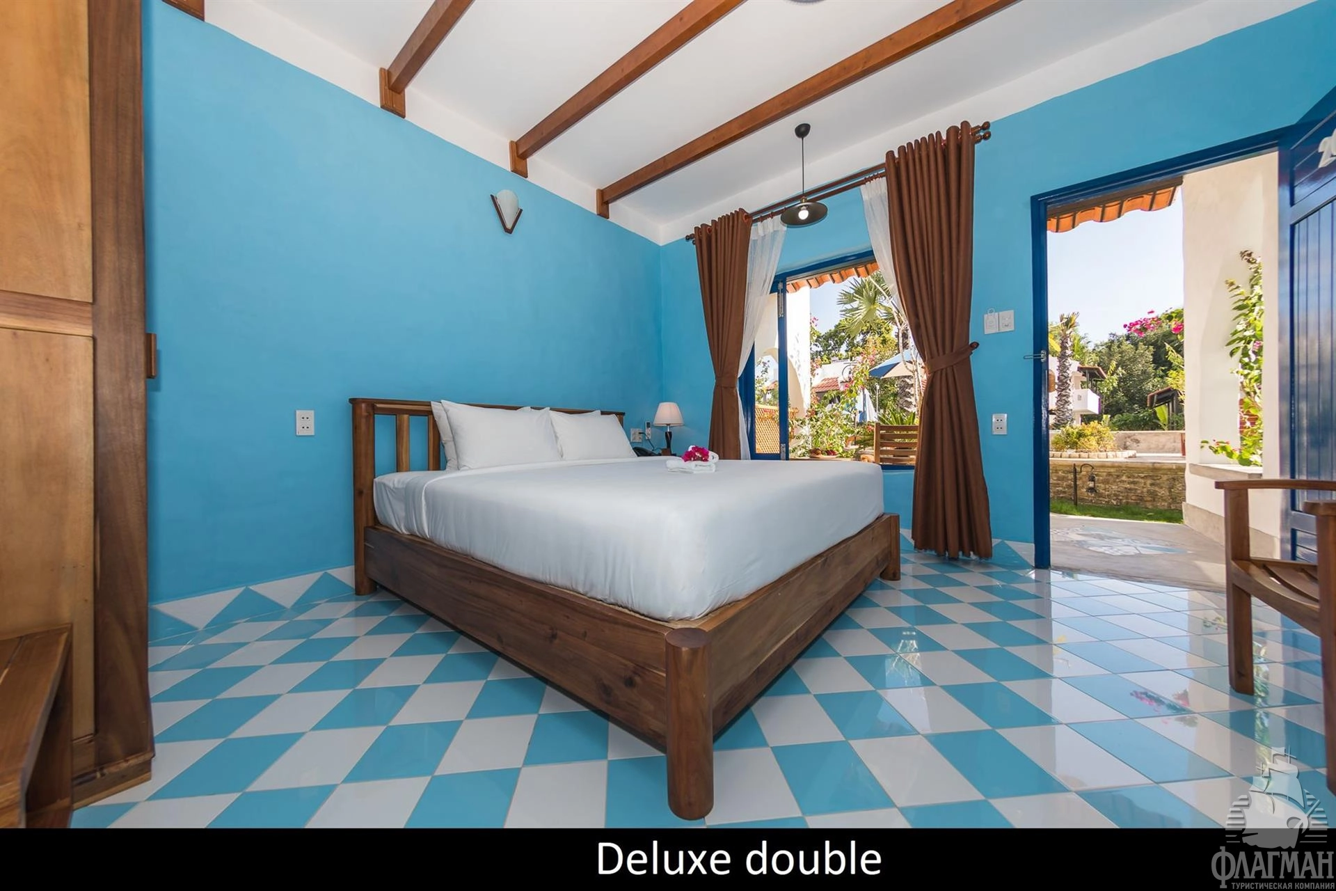 - Deluxe double (32 кв.м., макс. 2 взрослых + ребёнок) - спальня (dbl bed 1,6x2 м), ванная комната, балкон с видом на сад
