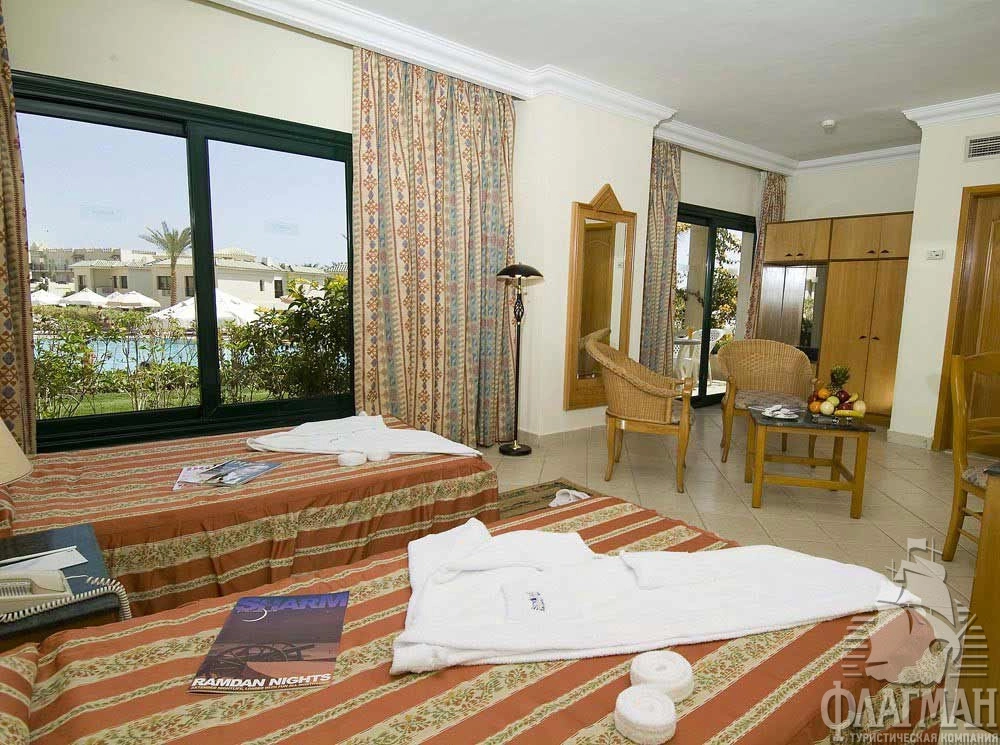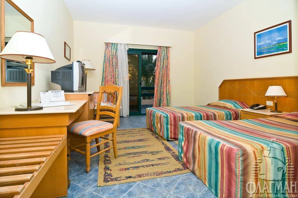 Территория также красива и ухожена. Много цветов и кустарников, старые пальмы. Но, к сожалению, ни здания, ни номера, судя по внешнему виду, даже поверхностно не реставрировались. В холле все еще было ничего, но когда нам показали номер, сильно разочаровались. Мебель стала просто ветхой, постельное белье чистое, но имелись застиранные пятна, у полотенец был характерный запах неизвестного моющего средства. Нормальные порошки обычно имеют приятный запах, понять, чем стирают, сложно. В ванной комнате было темно из-за неработающей лампочки, но по нашей просьбе ее заменили очень быстро. Уборка была сносной, каждый день мыли пол и вытирали пыль, что не всегда наблюдалось в других египетских отелях. Уборщик, старался, но возможно, это просто нам так повезло.