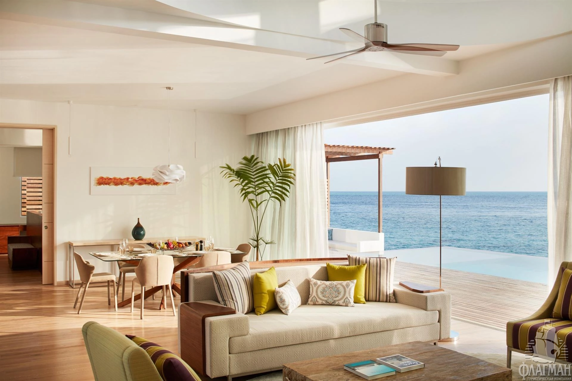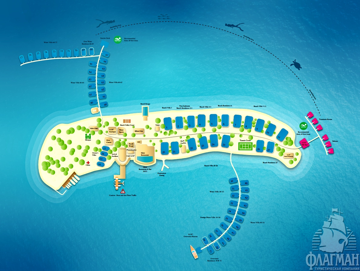 Трансфер: 40...50 мин. на скоростном катере (круглосуточно) или 25 мин. на гидросамолете (06:00-16:00).