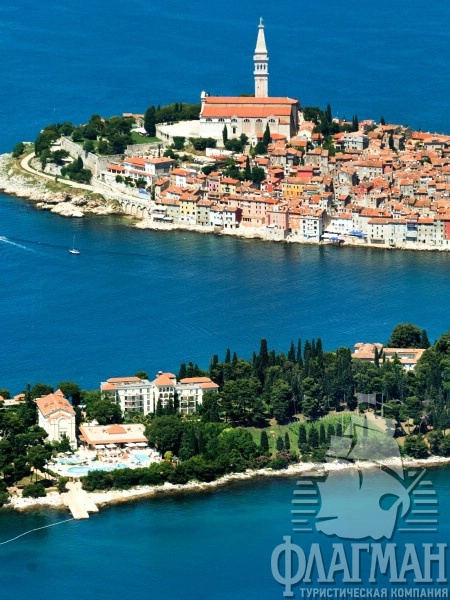 По-своему уникальный отель Катарина 2* расположен на чудесном вечнозеленом острове Святой Катарины, напротив Старого города Ровиня. Практически все 15 га площади острова покрыты пышной средиземноморской растительностью. в XIX веке остров был приобретен австрийским эрцгерцогом Карлом Стефаном, который в 1905 году продал его польскому графу Игнацу Милевски. Милевски был большим любителем природы и разбил на острове роскошные парки с более 400 видов деревьев (их до сих пор заботливо оберегают). Собственно, с тех времен сохранились только часть летней резиденции и эти парки. Здание не единожды обновлялось, а в 2000 году было расширено. На острове есть своя истрийская коноба. С острова открываются величественные виды на город и лесопарк Zlatni Rt. Большинство пляжей сосредоточено на восточной стороне острова. На юго-западной стороне есть пляж, называемый Golden Rock (Золотая скала) высотой 20 м, откуда наиболее храбрые прыгают прямо в море. Не рекомендуется далеко отплывать от берега, поскольку в сезон в море очень оживленное движение водного транспорта. Добираться от острова до Ровиня или наоборот вплавь строжайше запрещено.
