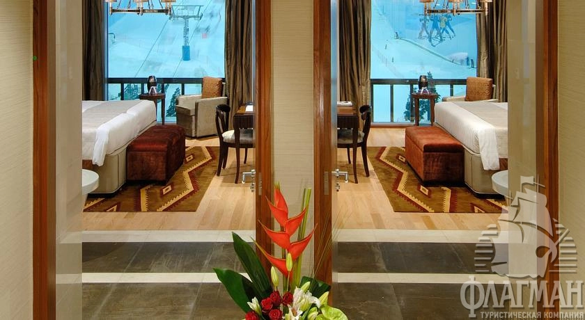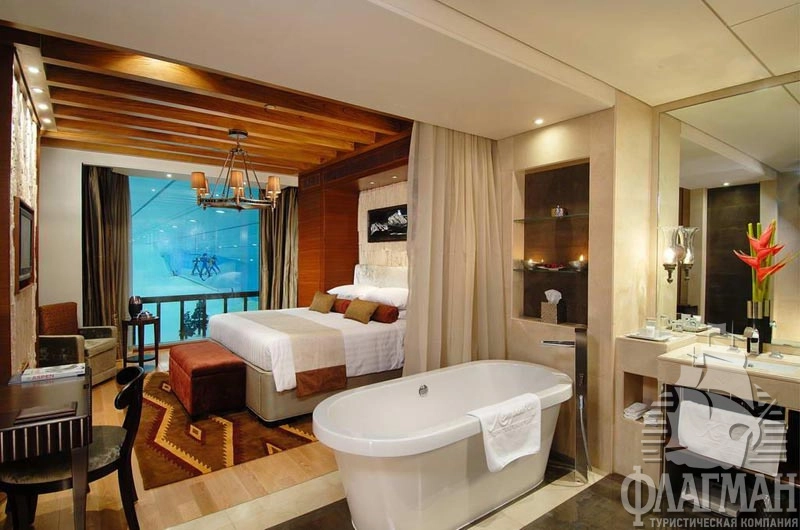 Ski Chalet (площадь 45 кв. м) - просторные номера с видом на горнолыжный склон Ski Dubai. В номерах: одна двуспальная кровать размера King Size, обеденная зона, ванная комната. Максимальное размещение 2 взрослых + 1 ребенок.