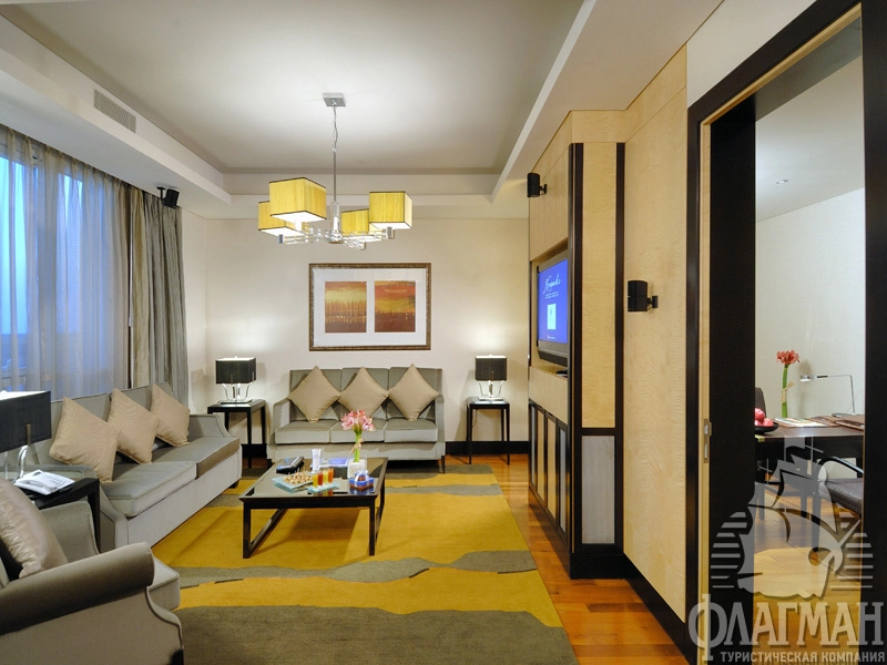 Executive Suite (площадь 71 кв. м) - элегантные номера с видом на город, в номерах: одна двуспальная кровать размера King Size , обеденная зона, спальня, просторная гостиная, письменный стол, ванная комната. Максимальное размещение 3 взрослых + 1 ребенок или 2 взрослых + 2 детей.