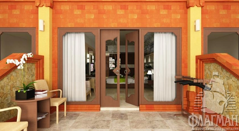 - Deluxe ( 36 кв.м)- вид в сад и частичный вид на море, дополнительно мягкий уголок;
