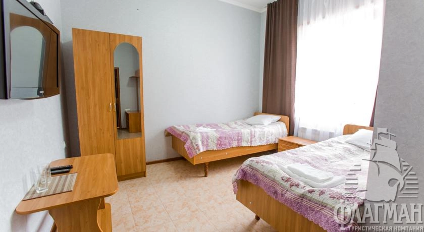 - 2-местный Стандарт. В номере: двух-/односпальные кровати, телевизор, шкаф, прикроватные тумбы. В ванной комнате: ванна, раковина, унитаз,полотенца, средства личной гигиены. В некоторых номерах возможно доп.место.