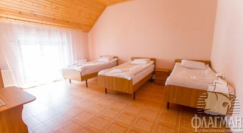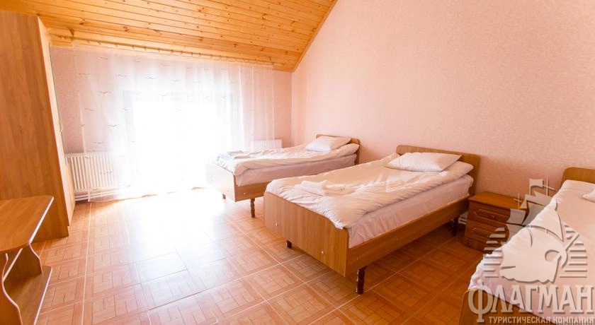 - 6-местный Стандарт. В номере: две изолированные комнаты, прихожая, ванная комната. В каждой комнате: 3 односпальные кровати, прикроватные тумбы, телевизор, шкаф. В ванной комнате: ванная, раковина, унитаз, полотенца, средства личной гигиены.