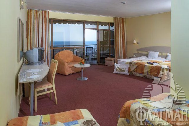 В курортном комплексе Золотые Пески, в 30 км от аэропорта города Варна, в 2 км от центра курорта, в северной части курорта и в 300 м от пляжа.