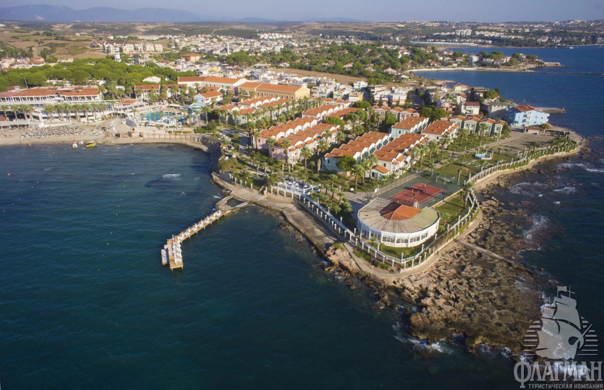 Расположен в 82 км от аэропорта Бодрума, в 6 км от центра г. Дидим, на берегу моря.