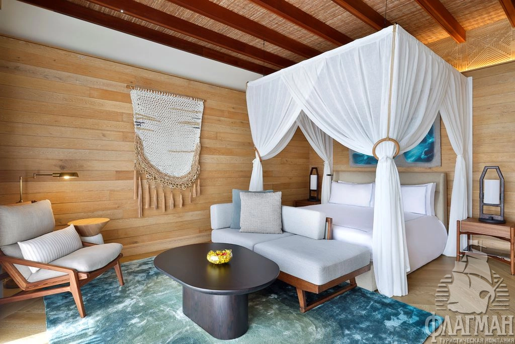 - Bay House Three Bedroom Pool Villa (гарантирует полное использование одного из Bay House: Bay House One Bedroom Pool Suite + 2 номера Bay House Grand Terrace Room, макс. 8 чел.).