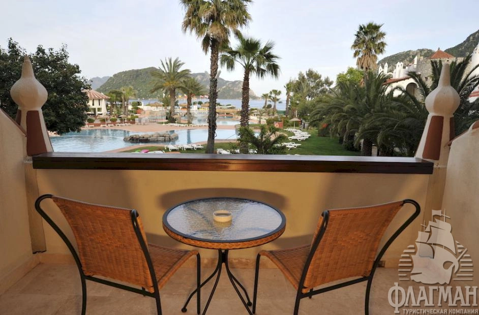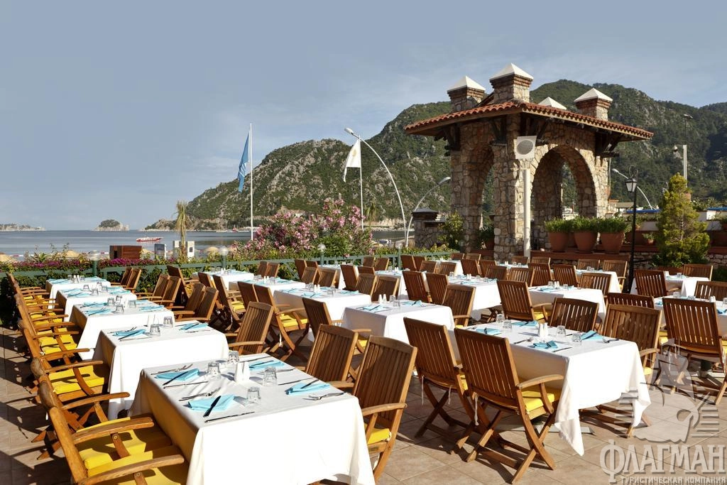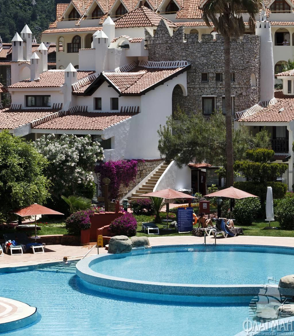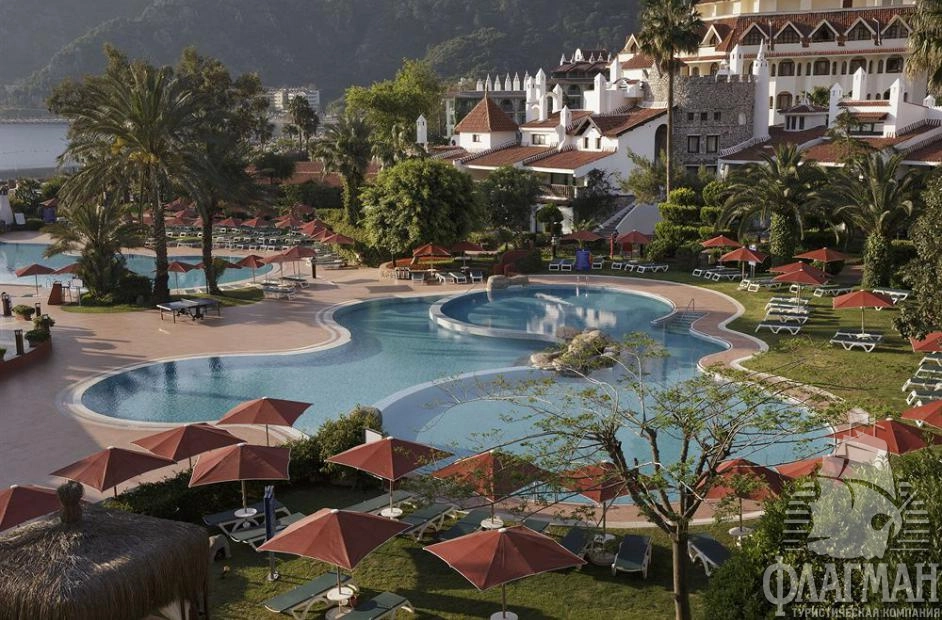 Расположен в 105 км от аэропорта г. Даламан, в 8 км от г. Мармарис, в 1 км от центра поселка Ичмелер, на берегу моря.