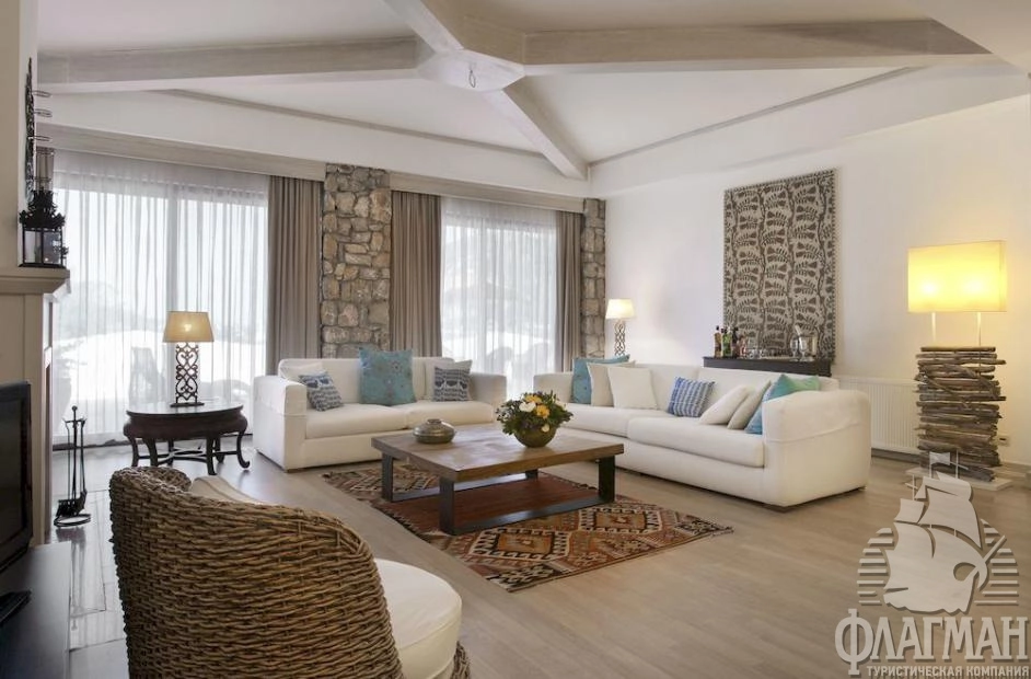 4 двухкомнатных one bedroom suite (с видом на море, гостиная, спальня с дверью, 2 ванные: одна из них с ванной, макс. 3 чел., 58 м2);