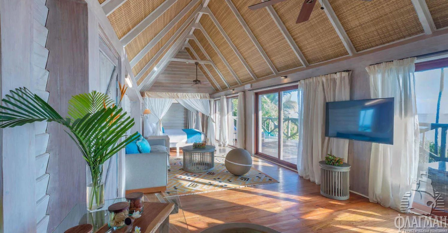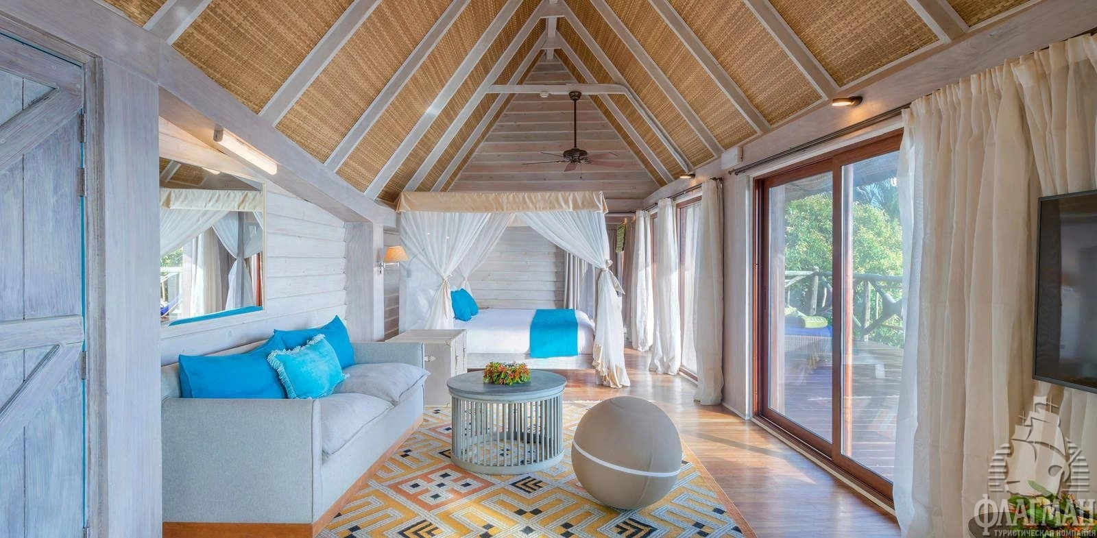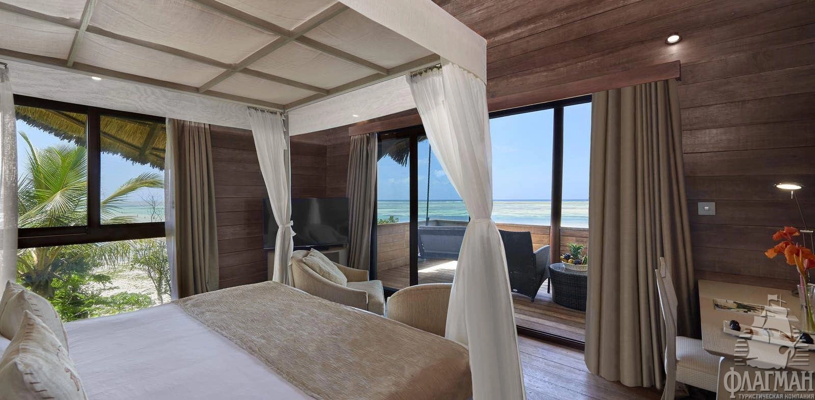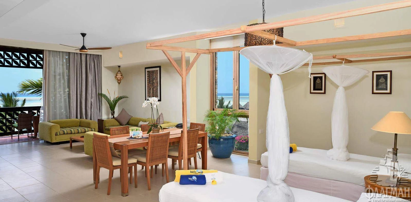 - Zanzibar Suite - двухкомнатные номера 117 м2 на втором этаже с видом на сад/частично на океан. Гостиная с обеденным столом, 2 балкона. 1 двуспальная кровать King-size (200х200 см) в спальне. Душ на открытом воздухе, потолочный вентилятор, мини-бар, 2 раковины, банные принадлежности, весы, зонтик, чайные принадлежности. Пакет услуг "Премиум все включено" и сервис The Level.