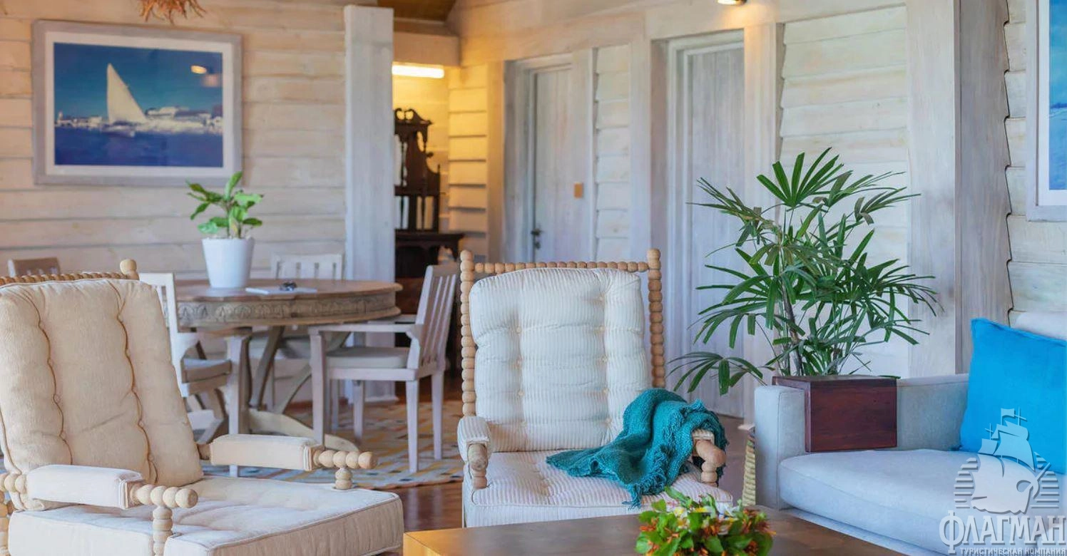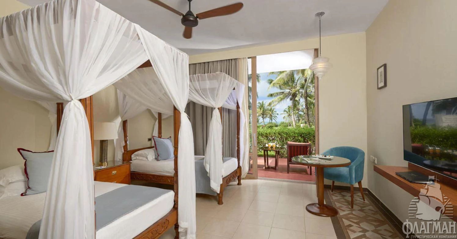 - Family Room - двухкомнатные номера 117 м2 на втором этаже с видом на сад/частичный вид на океан. Гостиная с обеденным столом, 2 балкона. 1 двуспальная кровать King-size (200х200 см) в спальне. Дополнительные спальные места возможно установить в гостиной. Душ на открытом воздухе, потолочный вентилятор, мини-бар, 2 раковины, банные принадлежности, весы, зонтик, чайные принадлежности.