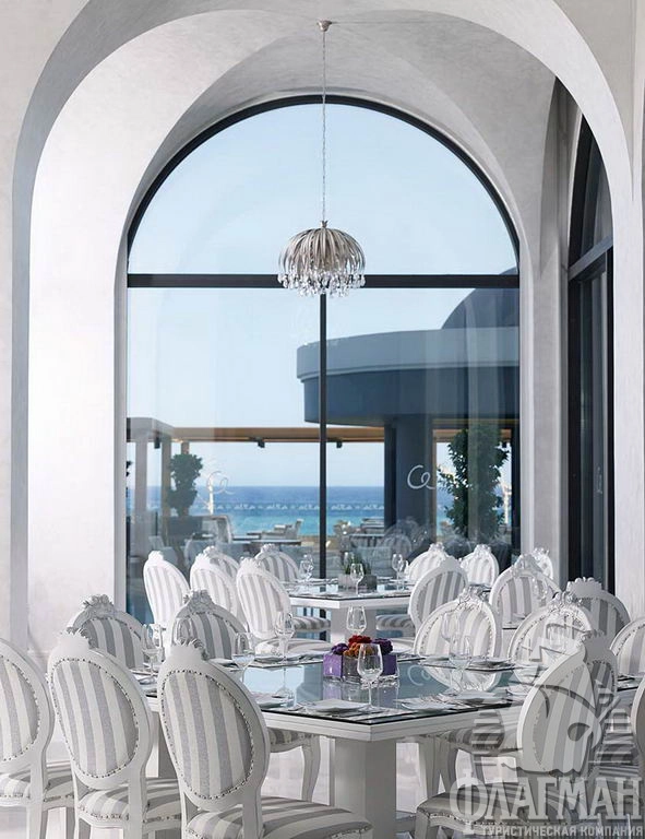 Предлагает греческую кухню. Открыт для обеда (12:30-14:30) и ужина (19:00-21:30); необходимо предварительное бронирование столика.