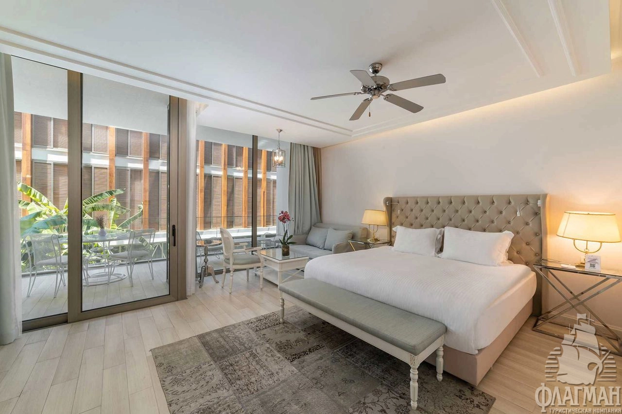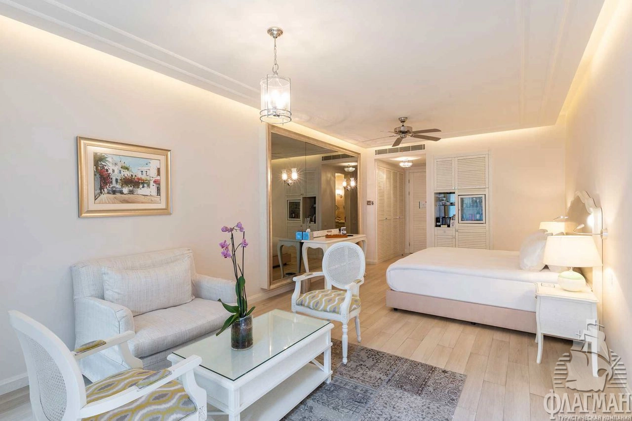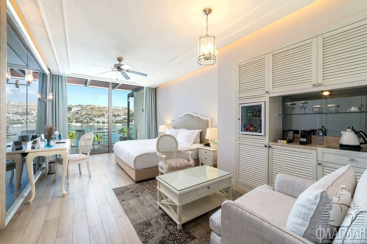 Мивара Лакшери Бодрум 5* это элитный бутик-отель 5* на первой береговой линии в престижном Гюндогане (Бодрум). Современный дизайн (обновлен в 2021 г.) сочетается с исключительным сервисом и приватностью. Гостей ждет собственный песчаный пляж с пирсом, открытый и крытый подогреваемые бассейны, а также роскошный спа-центр с турецкой баней, сауной и массажными кабинетами. Просторные номера (от 37 м²) и люксы (до 125 м²) оформлены в лаконичном стиле, оснащены балконами с видами на море или сад, техникой премиум-класса и ванными комнатами с косметикой Bvlgari. Гастрономия представлена рестораном интернациональной кухни Amanni, японским Minami и лобби-баром с авторскими коктейлями. Для активного отдыха доступны фитнес-центр, водные виды спорта, недалеко и до Ялыкавак Марины (5 км). Ключевые премиум-услуги: консьерж-сервис, трансфер из аэропорта Милас-Бодрум (50 км) и программа лояльности Mivara Club со скидками до 30% на проживание и спа. Идеально для взыскательных путешественников, ценящих уединение, безупречный комфорт и внимание к деталям.