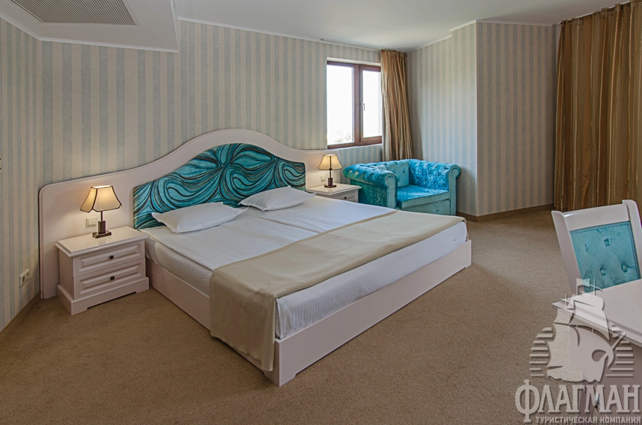 - Double Superior Sea View - большая комната с видом на море, двуспальная кровать, раскладное кресло и стол с двумя стульями, большой балкон, ванная комната с душем, макс. 2 взр.+ 1 реб., 34 м2 ;