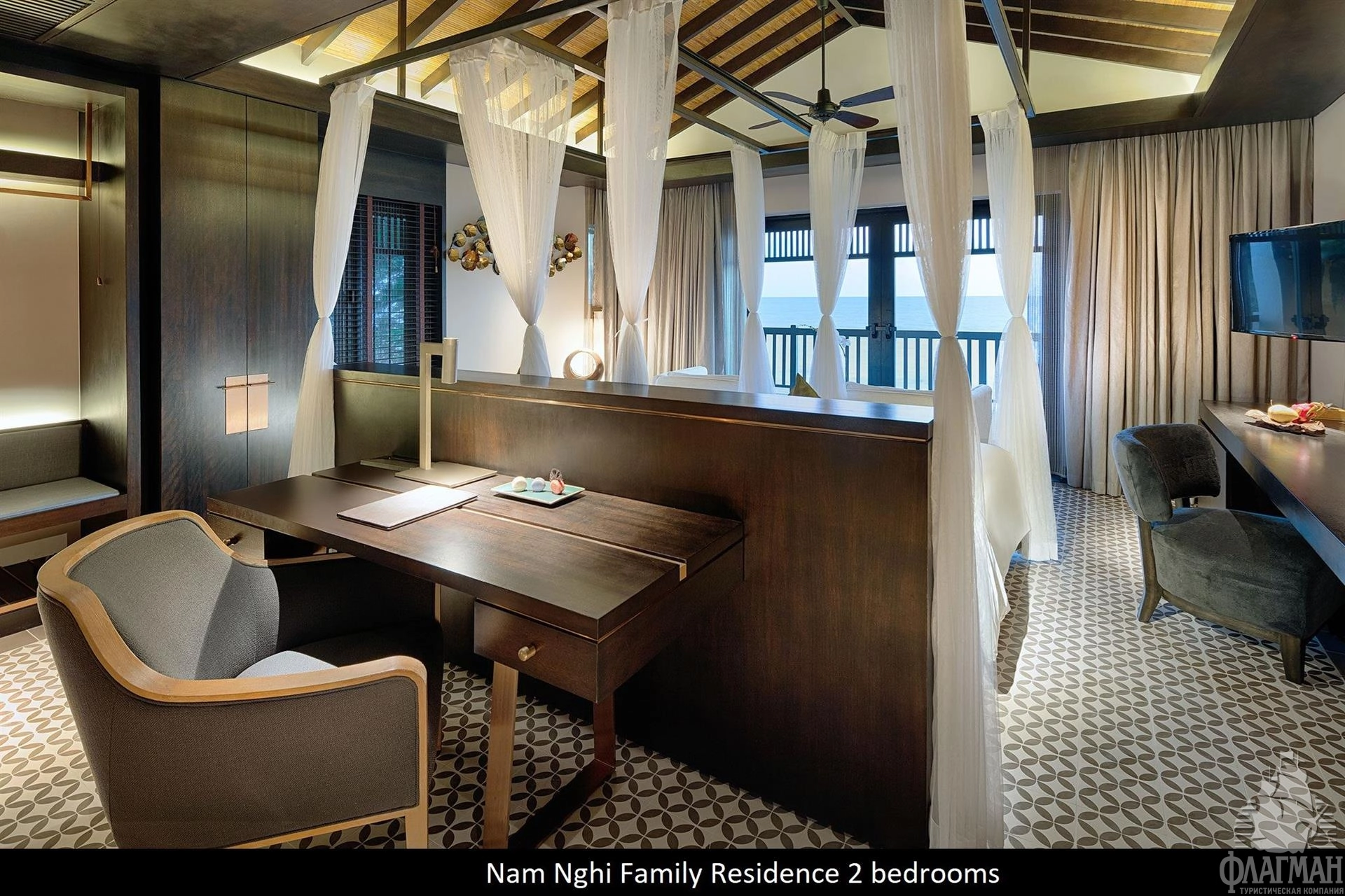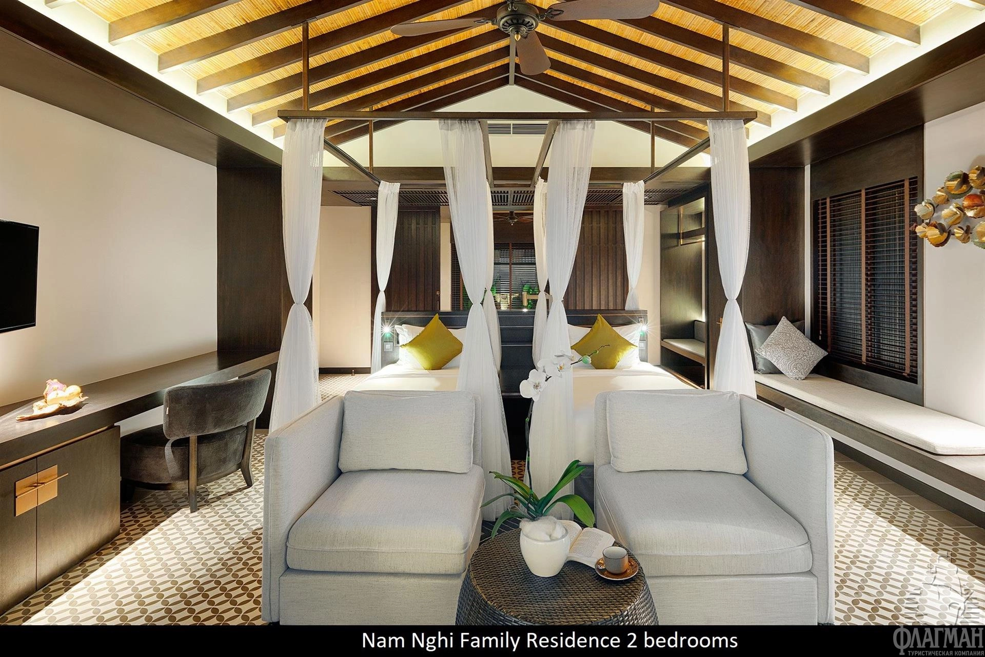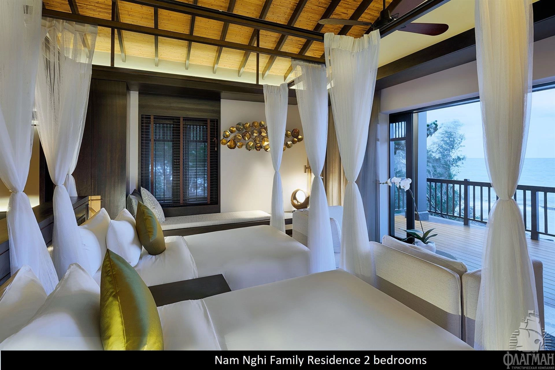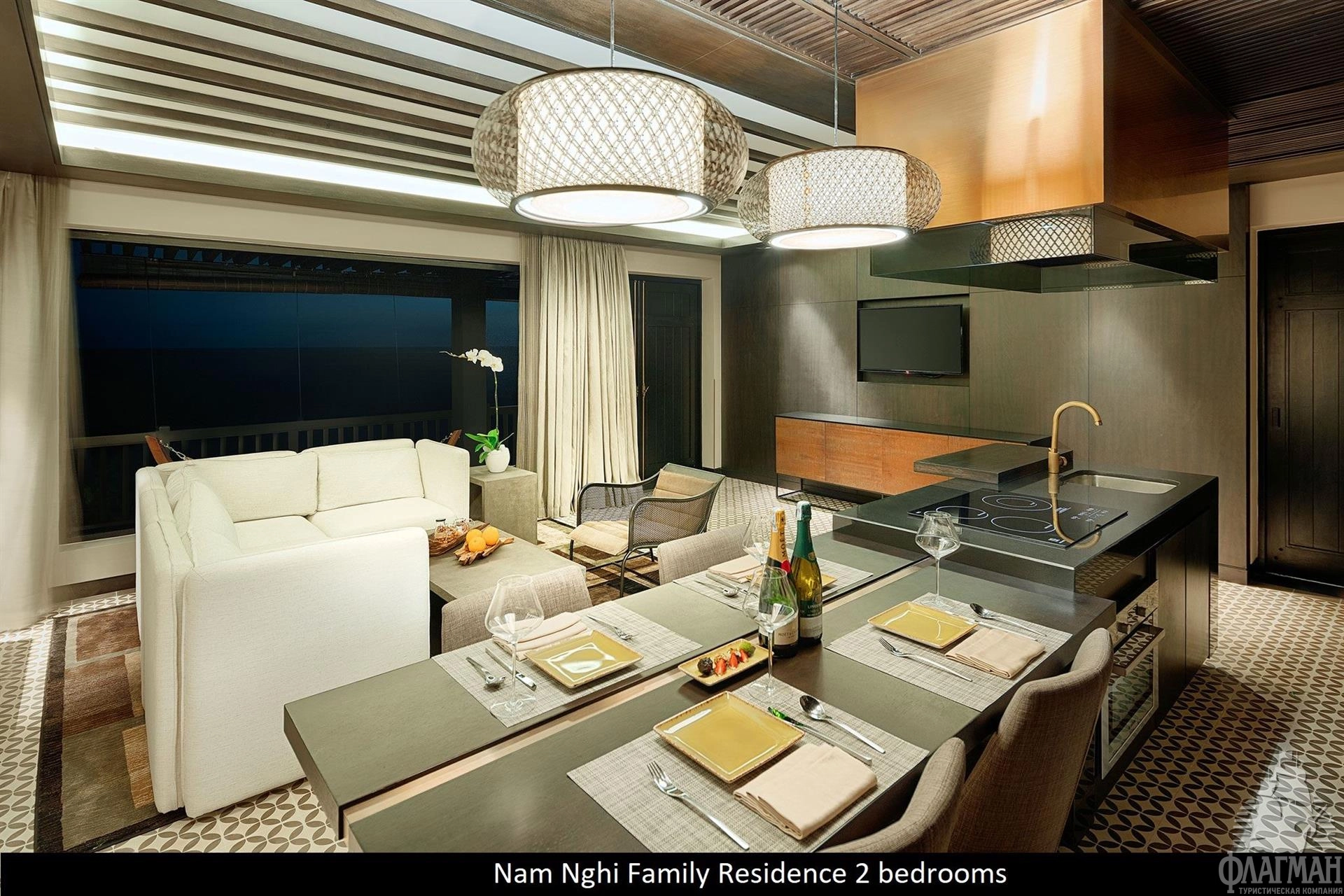 - Nam Nghi Family residence 2 bedrooms (252 кв.м., макс. 4 взрослых + 2 детей/5 взрослых) - 2 спальни (dbl bed + twin bed), гостиная, 2 ванные комнаты, кухня, балкон/терраса с видом на море