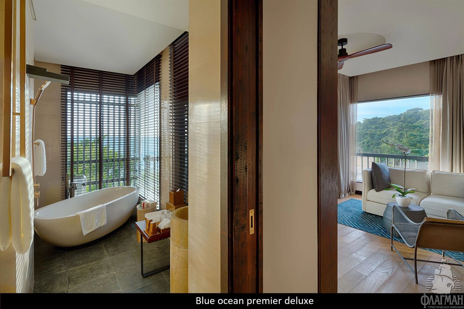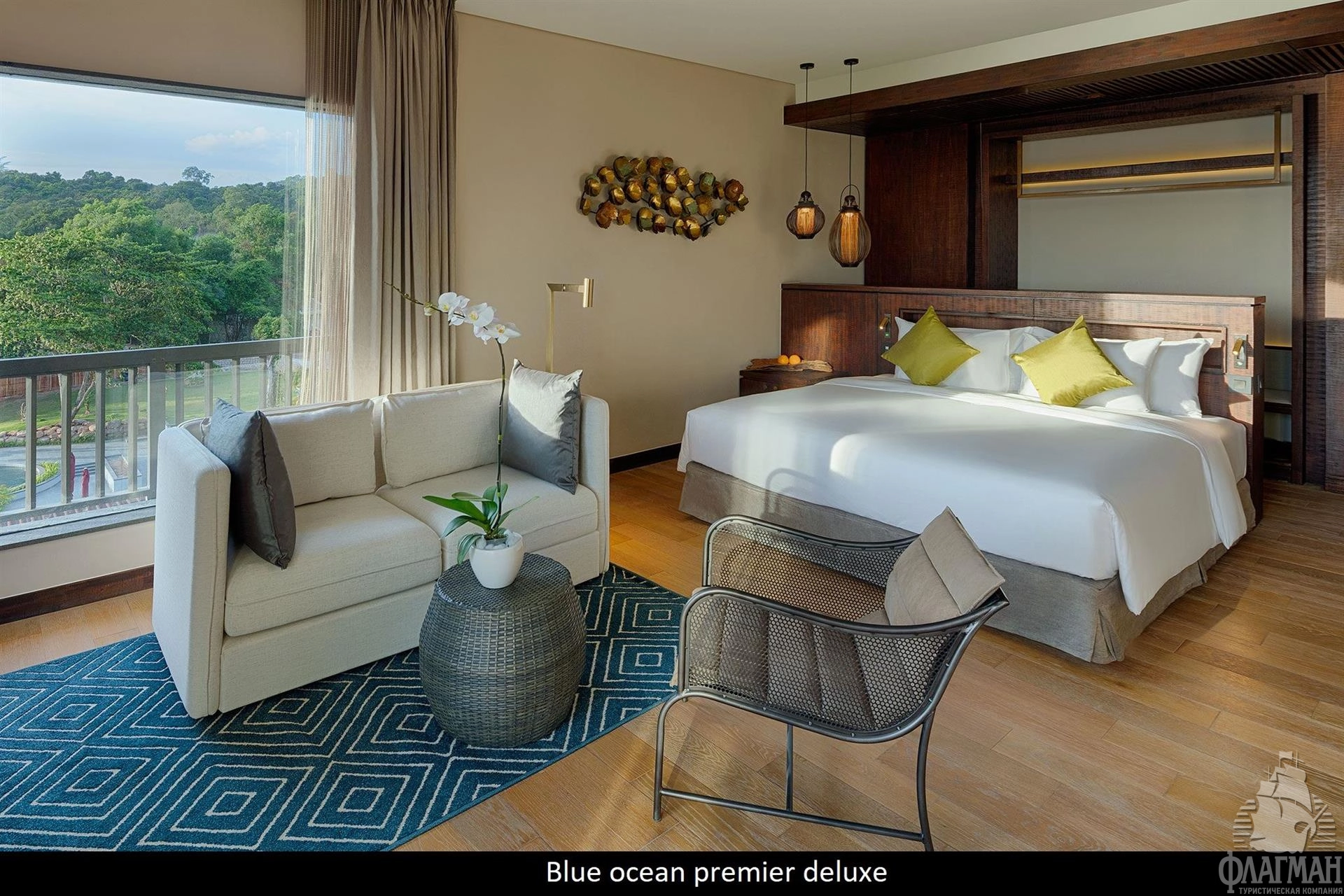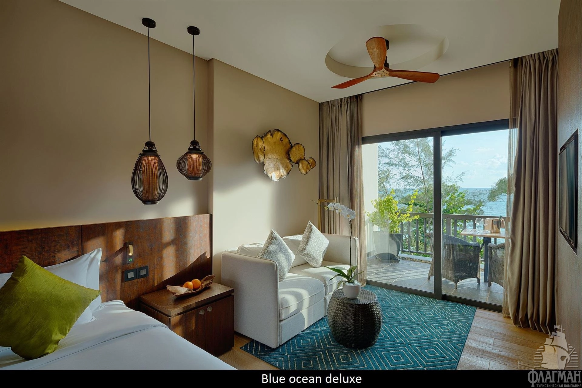 - Blue ocean premier deluxe room (63 кв.м., макс. 2 взрослых + 2 детей/3 взрослых) - спальня (dbl bed), ванная комната, балкон с видом на море, номера расположены в главном здании