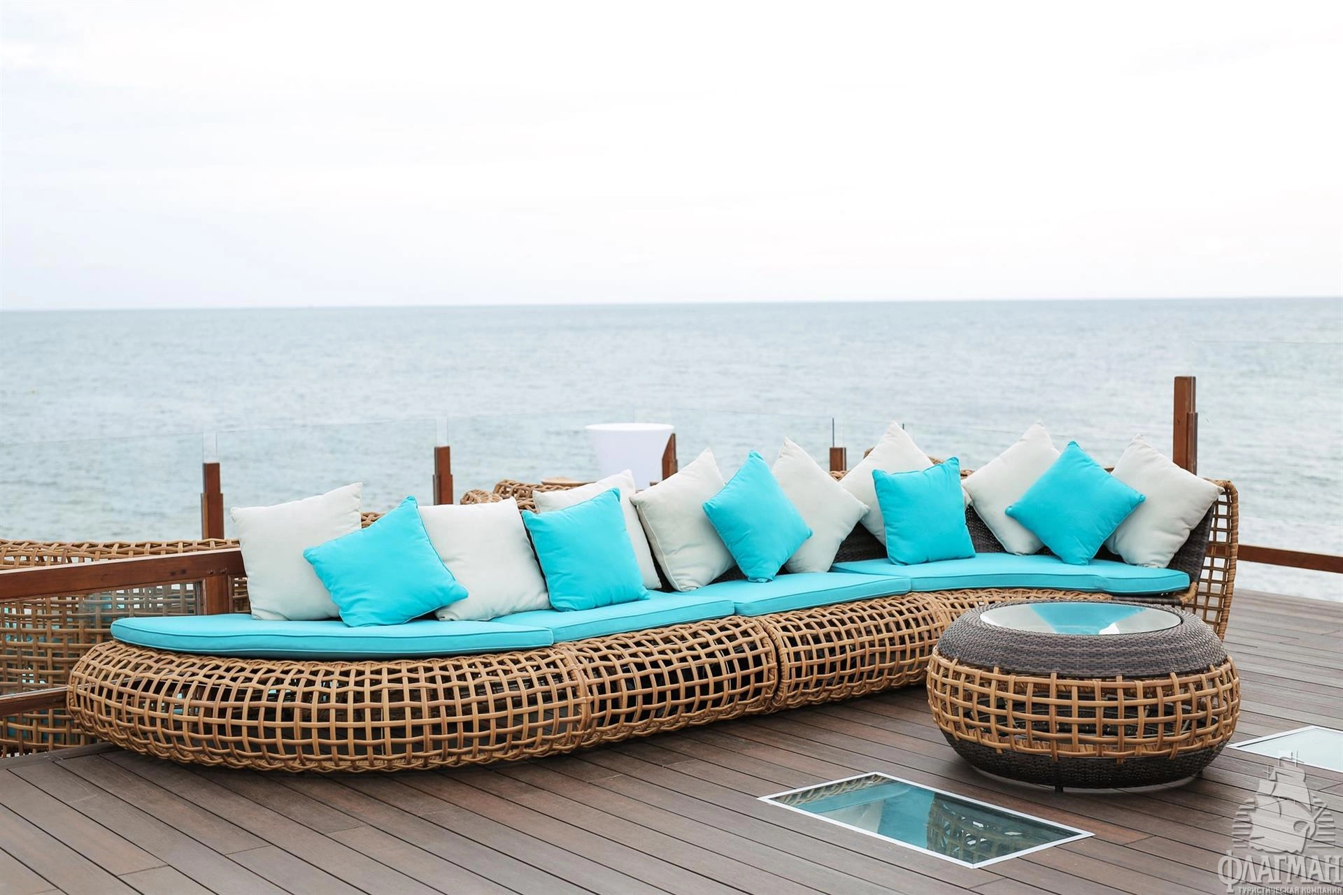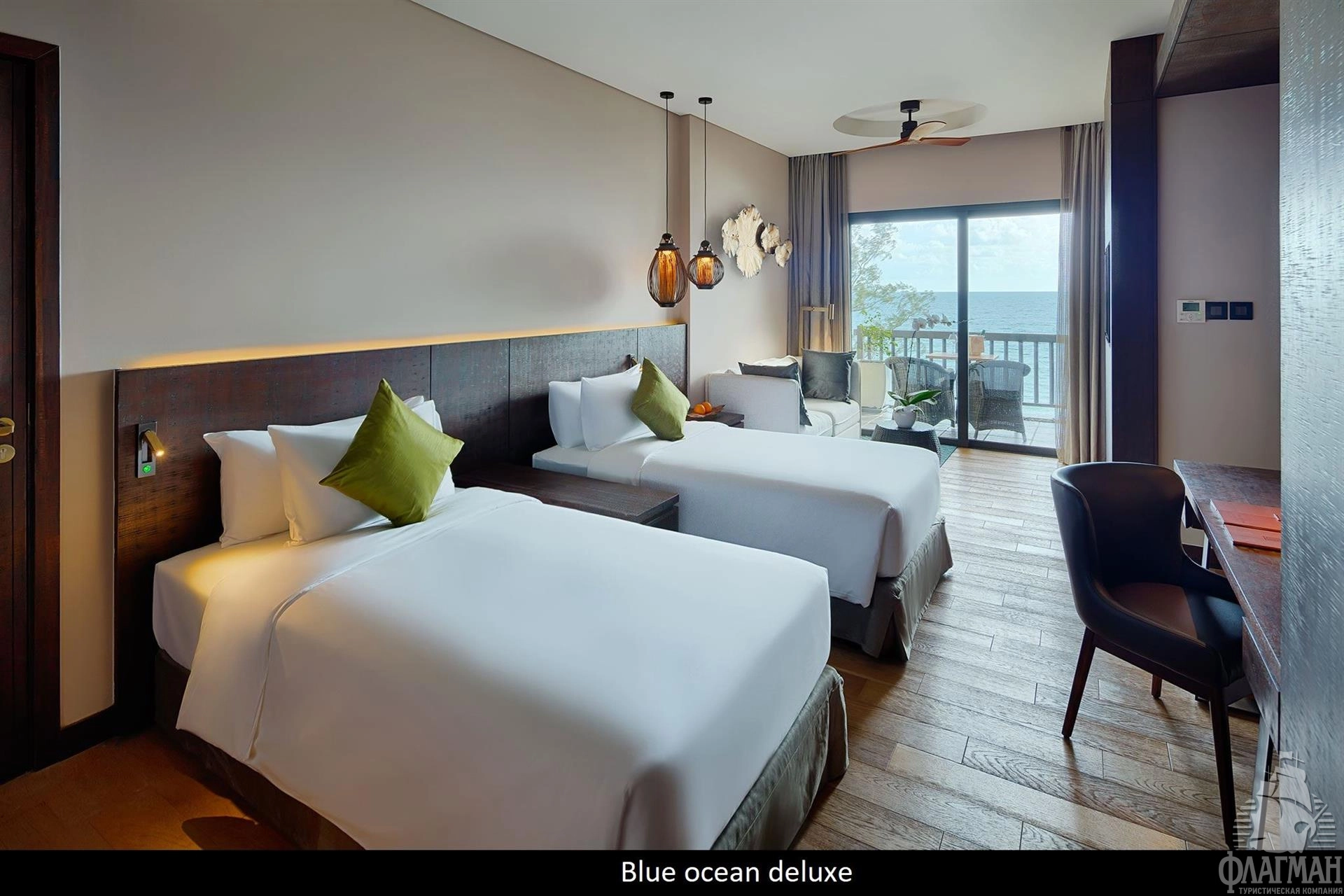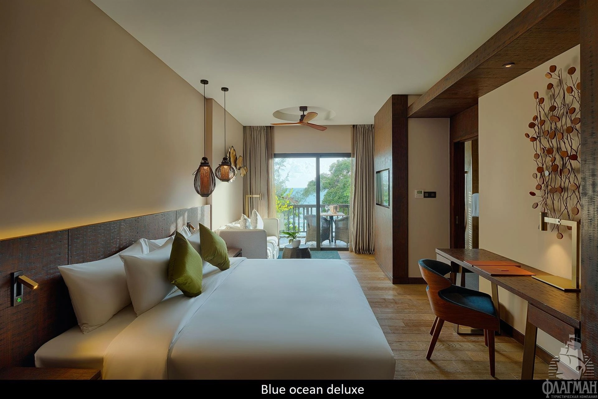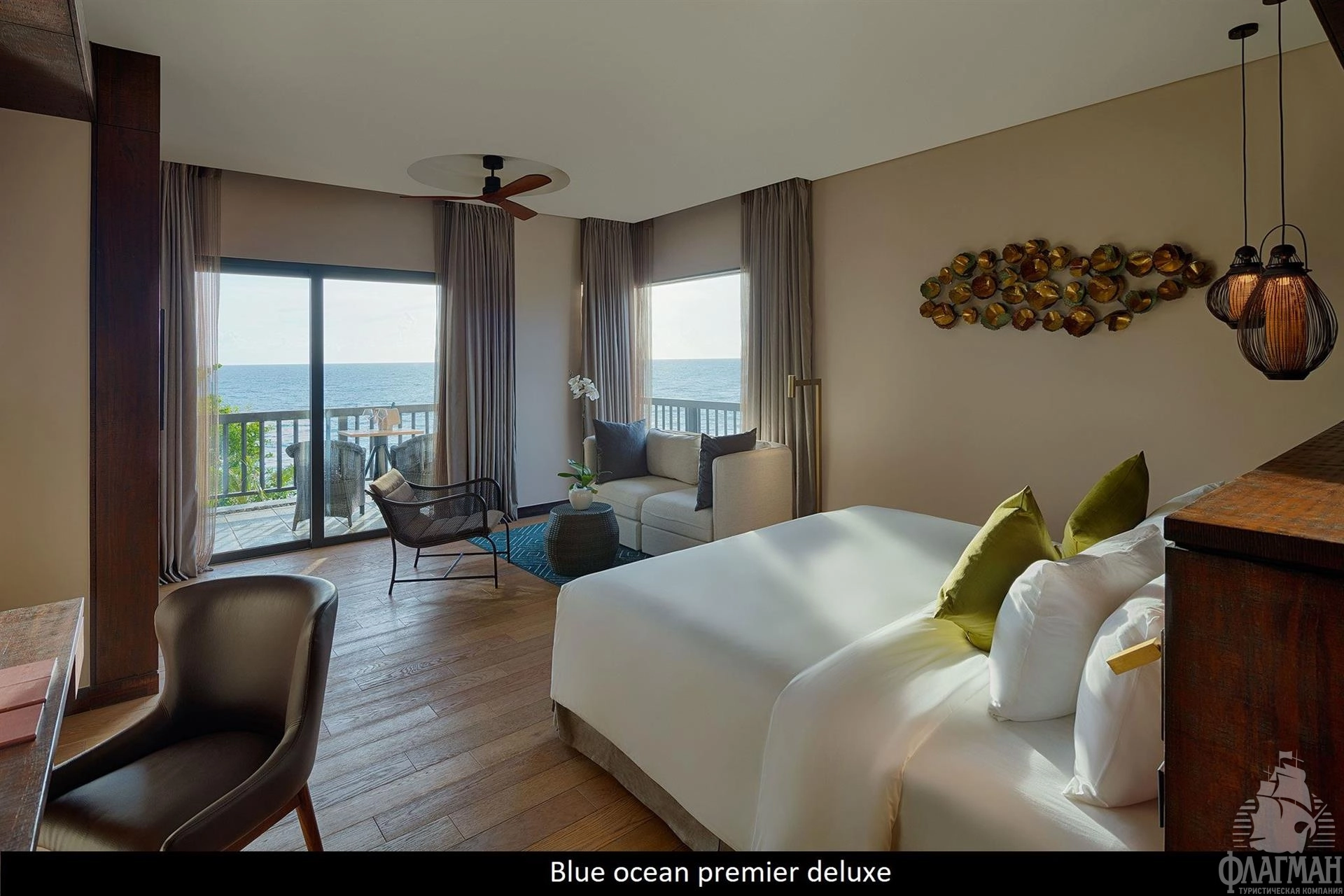- Blue ocean premier deluxe room (63 кв.м., макс. 2 взрослых + 2 детей/3 взрослых) - спальня (dbl bed), ванная комната, балкон с видом на море, номера расположены в главном здании