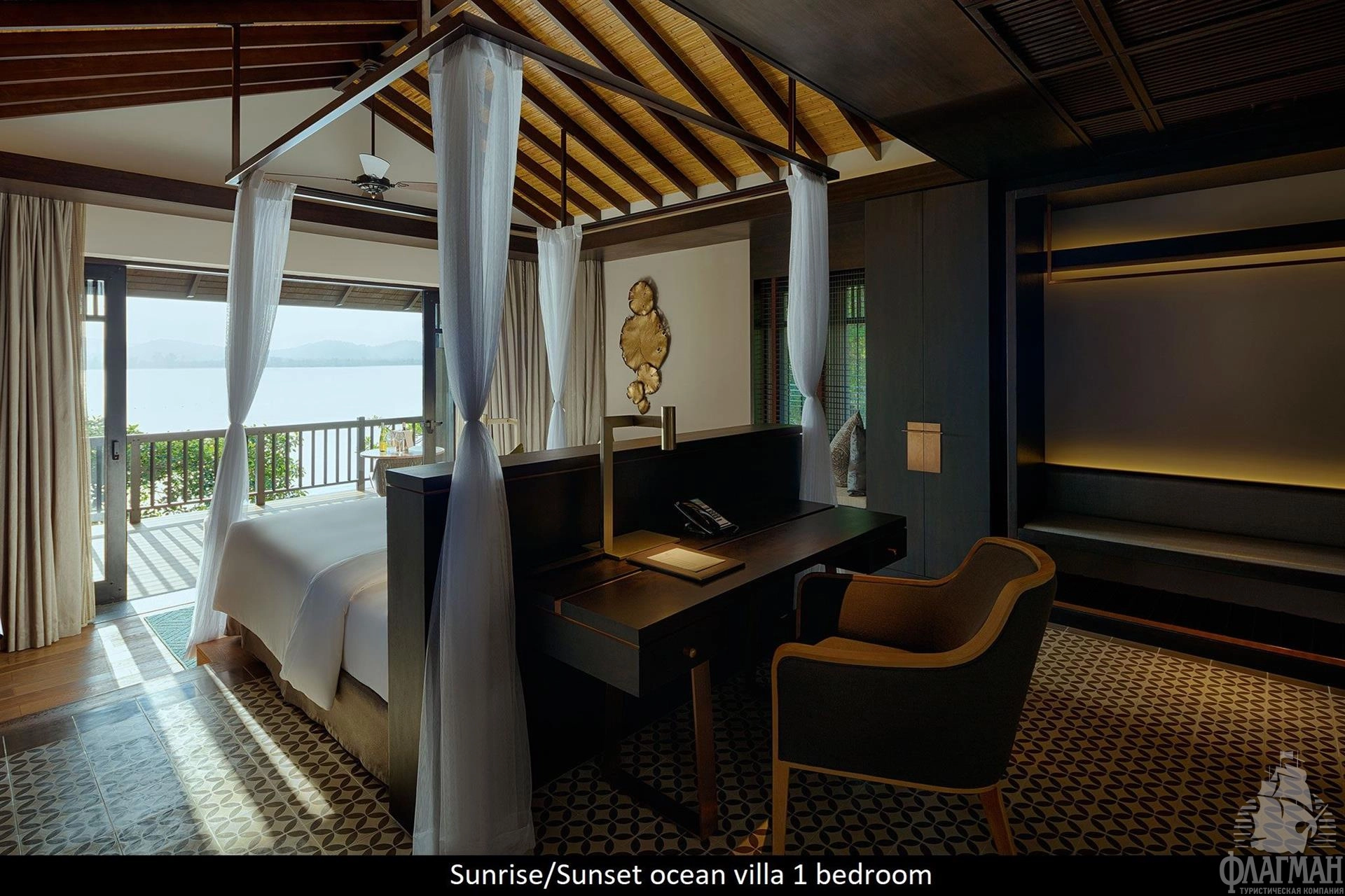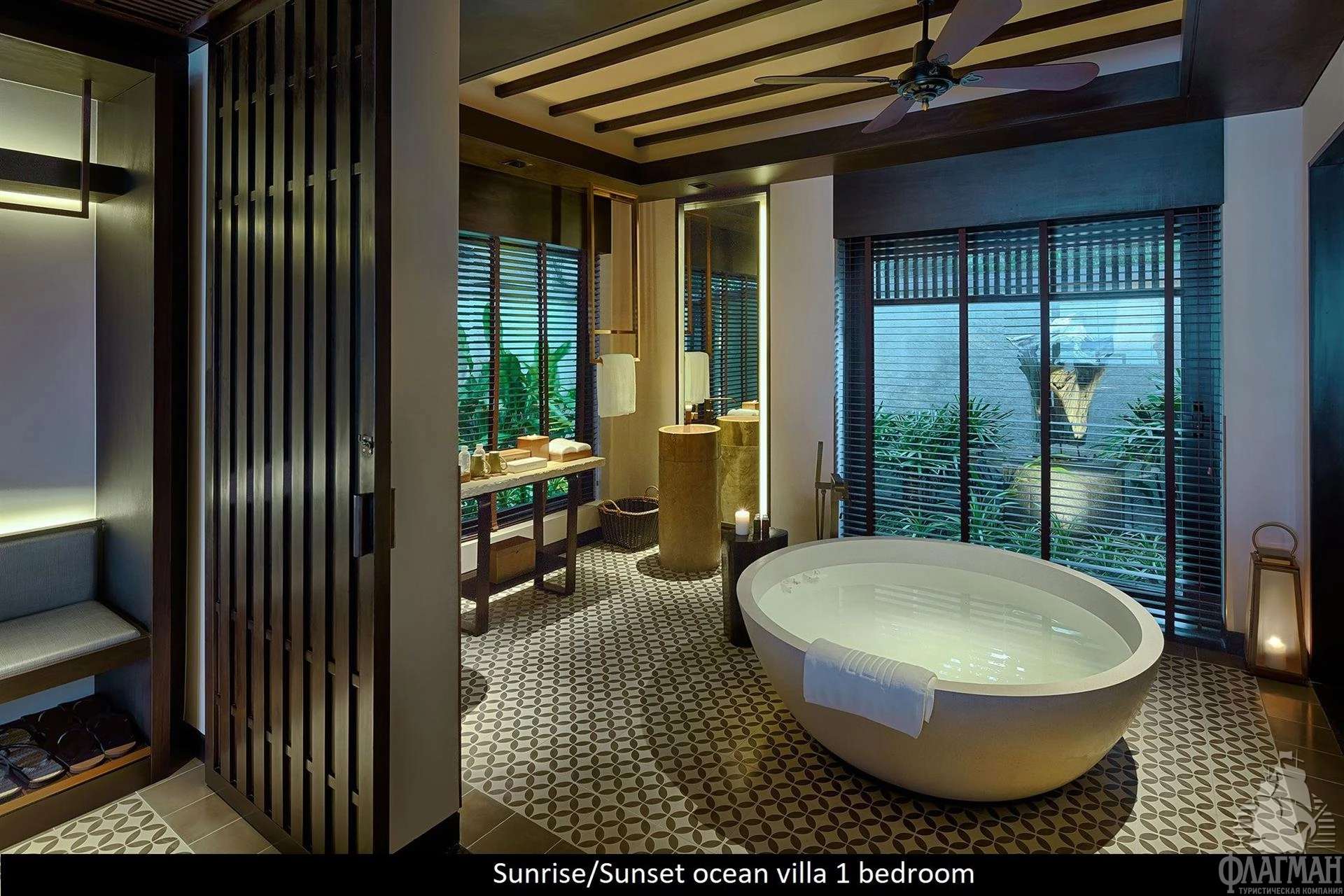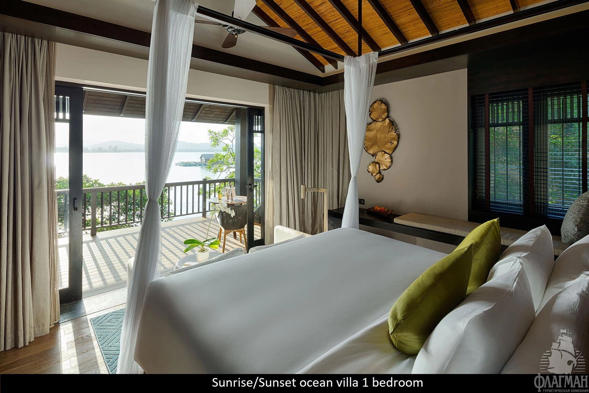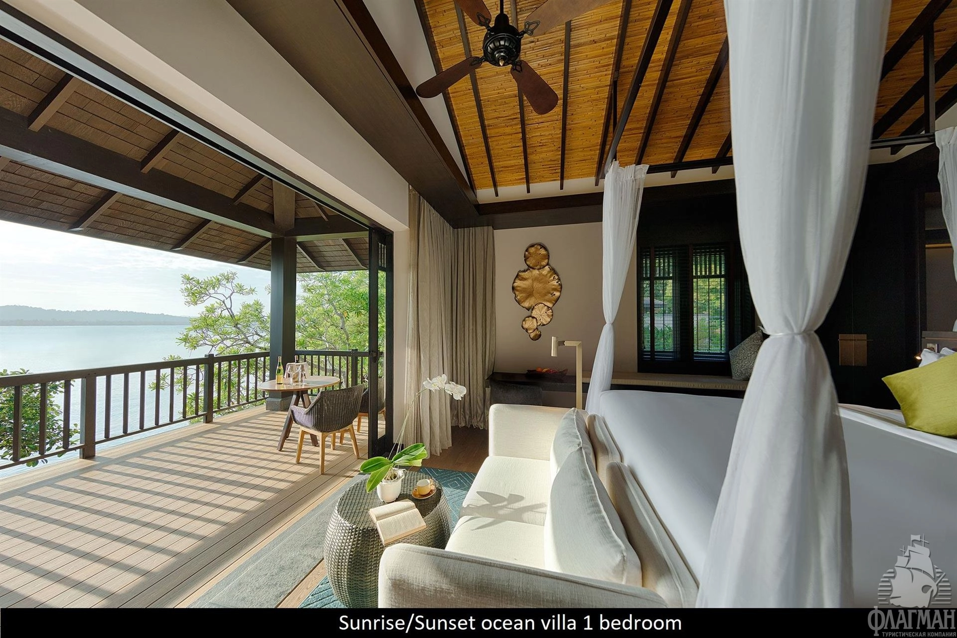 - Sunrise/Sunset ocean villa 1 bedroom (108 кв.м, макс. 2 взрослых + 2 детей) - спальня (dbl bed), ванная комната, балкон/терраса с видом на море