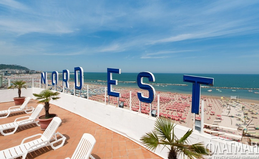 Красивый и комфортабельный отель Норд Ист 4* расположен на берегу моря, в самом центре курорта на знаменитой улице Via Carducci. На территории отеля есть: прокат велосипедов, парковка, гараж, ТВ зал, детская площадка, прачечная, бассейн с гидромассажем, тренажерный зал, солярий. Рекомендуем для отдыха с детьми и молодежных компаний.