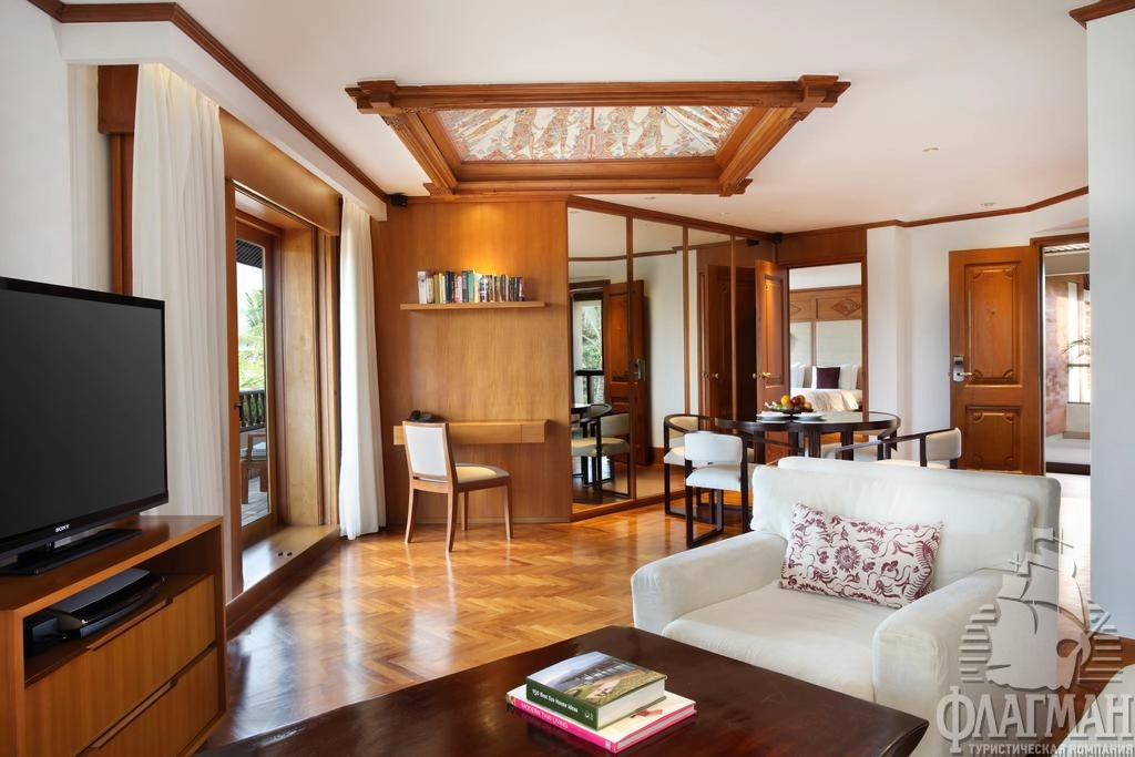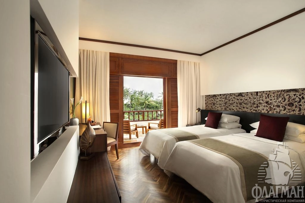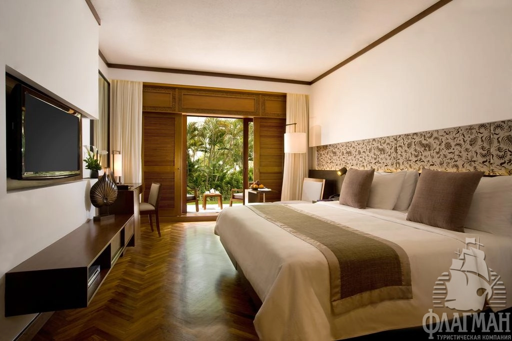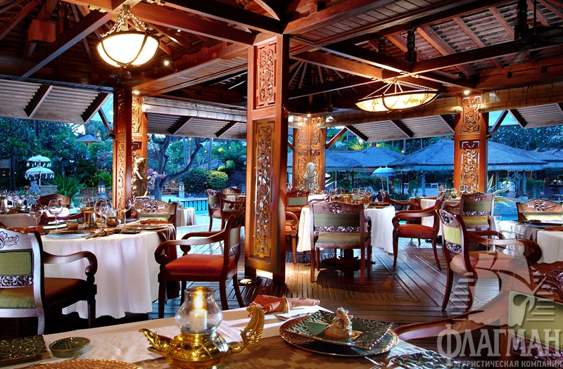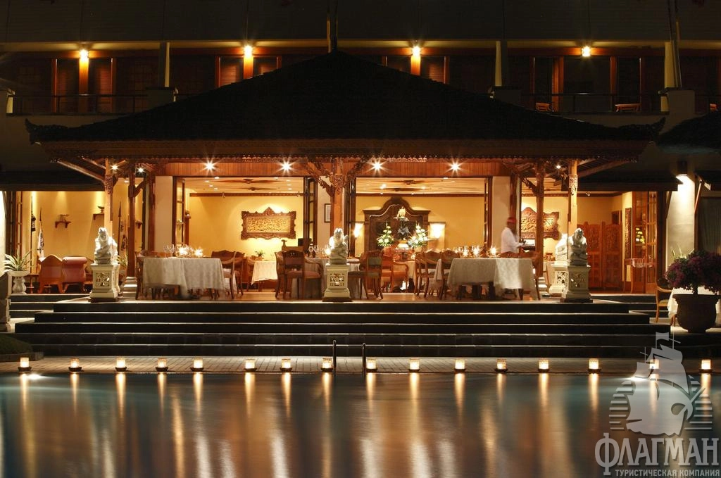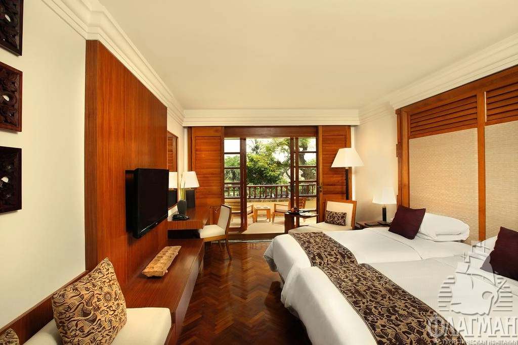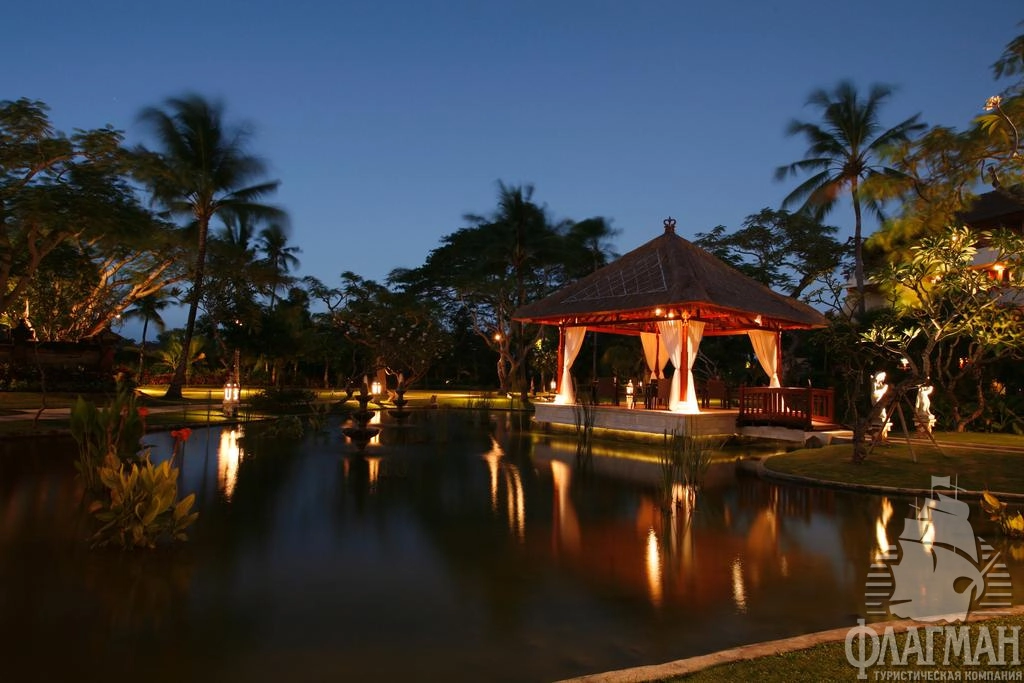 Нуса-Дуа Бич Отель и Спа 5*– это один из самых стильных и роскошных отелей на Бали. Утончённый стиль балинезийского дворца, просторные парки и сады, множество цветов, уютные беседки и навесы из мангрового дерева, прудики с золотыми рыбками, журчащие ручейки и английские лужайки. В оформлении интерьера используется мрамор, редкие породы дерева, предметы балинейзийского искусства. В этой гостинице останавливались президенты и короли, например, Рональд Рейган, Франсуа Миттеран, Султан Брунея и другие не менее известные особы.