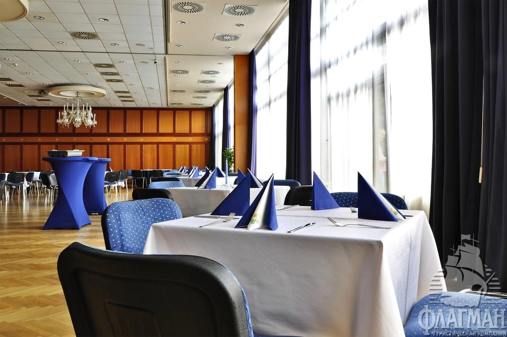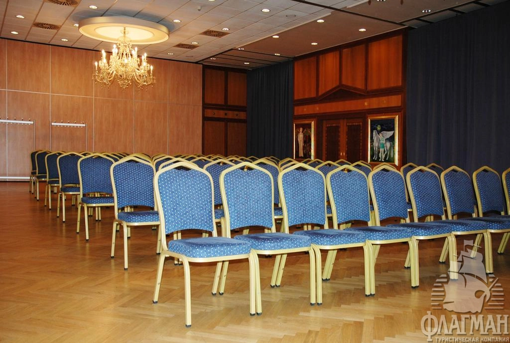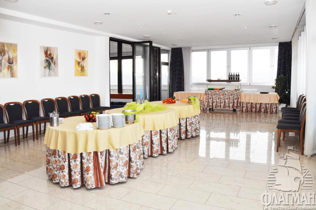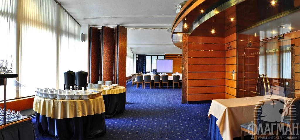 Современный бизнес -центр расположен на первом этаже, может быть разделен на 5 частей – три конференц-зала, фойе и большой зал. Он подходит для проведения праздничных мероприятий, конгрессов, конференций, корпоративных встреч, фуршетов, банкетов, и др. Помещения могут быть адаптированы для проведения встреч и переговоров рабочей группы.