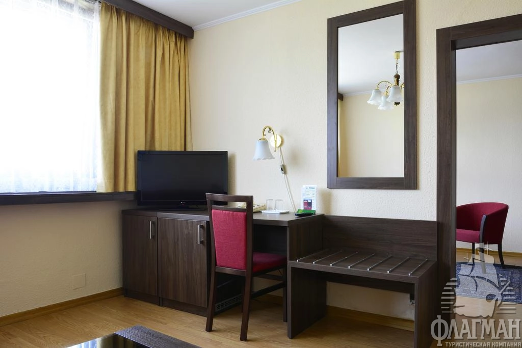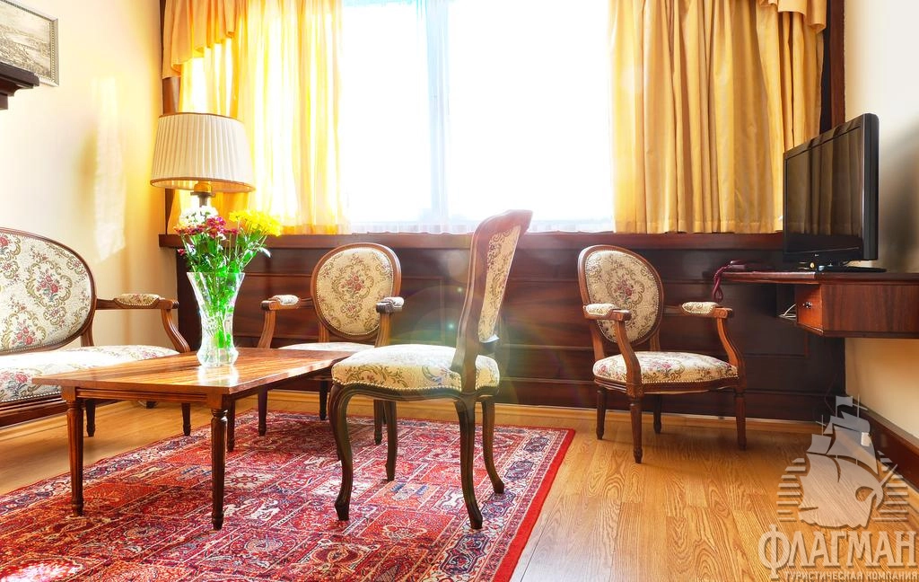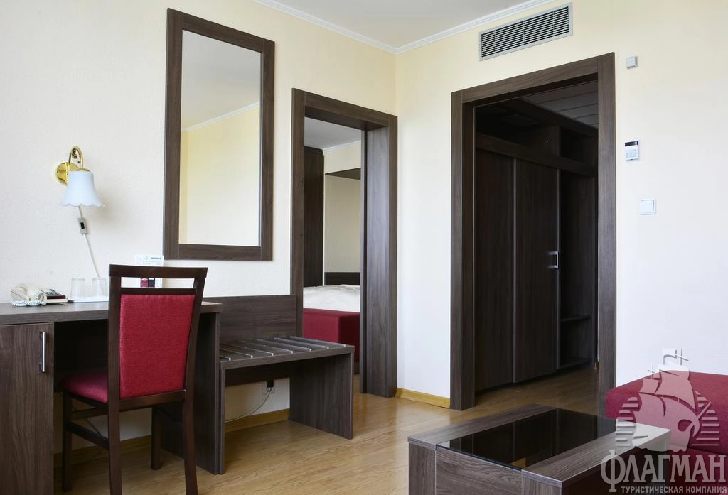 - Suite (двухкомнатный, гостиная с мягкой мебелью и спальня с двхспальной или 2 односпальными кроватями)