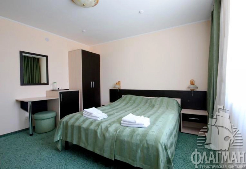 - 2-местный стандартный номер категории А (макс. 2+1 чел., 18 кв. м, телевизор, кондиционер, душ, туалет, холодильник, телефон, 1,5-спальные кровати). Доп. место - кровать/раскладушка, может быть установлена без ограничения по возрасту.