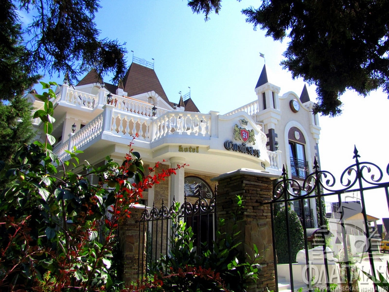 Отель "Камелот" находится в пос. Малореченское, между Алуштой и Судаком (в 25 км от Алушты).