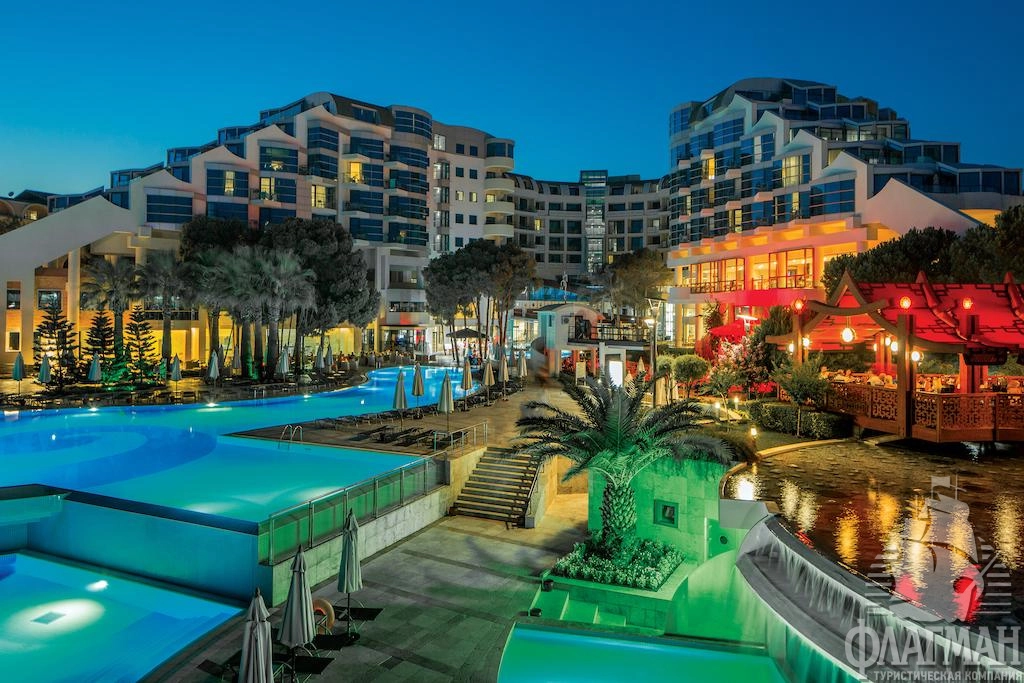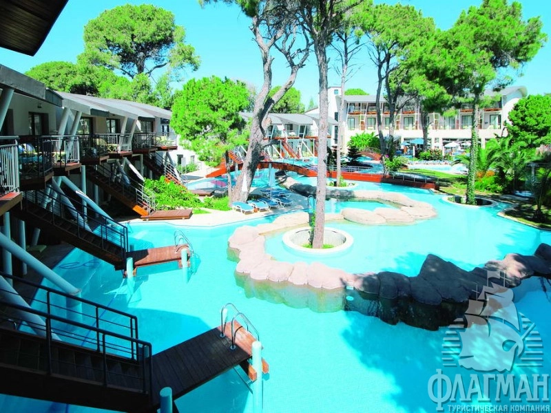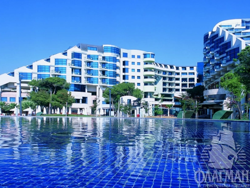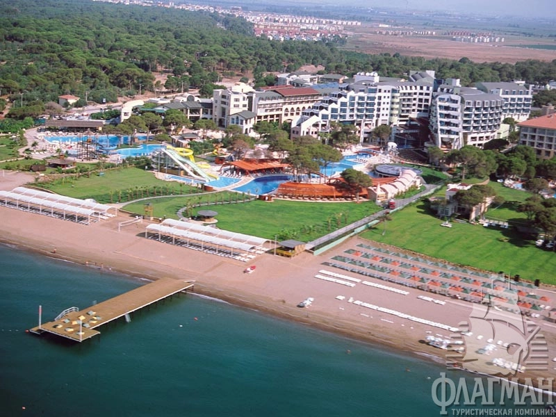 Расположен в 35 км от аэропорта и в 45 км от центра г. Анталья, в 4 км от г. Белек, на берегу моря.