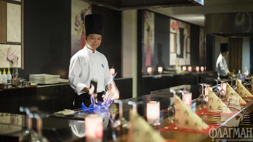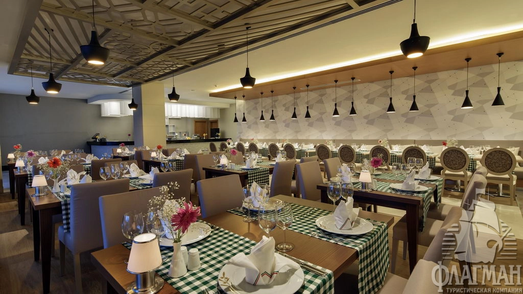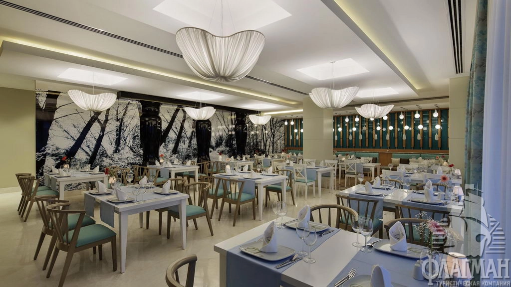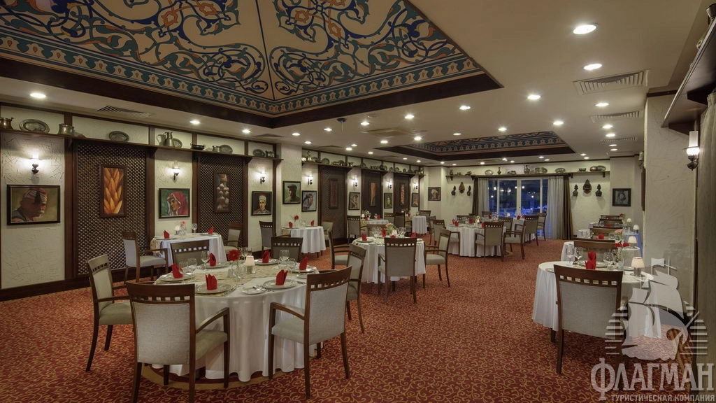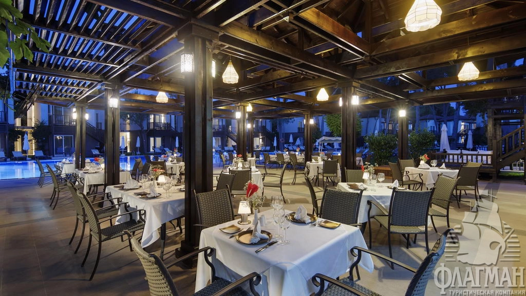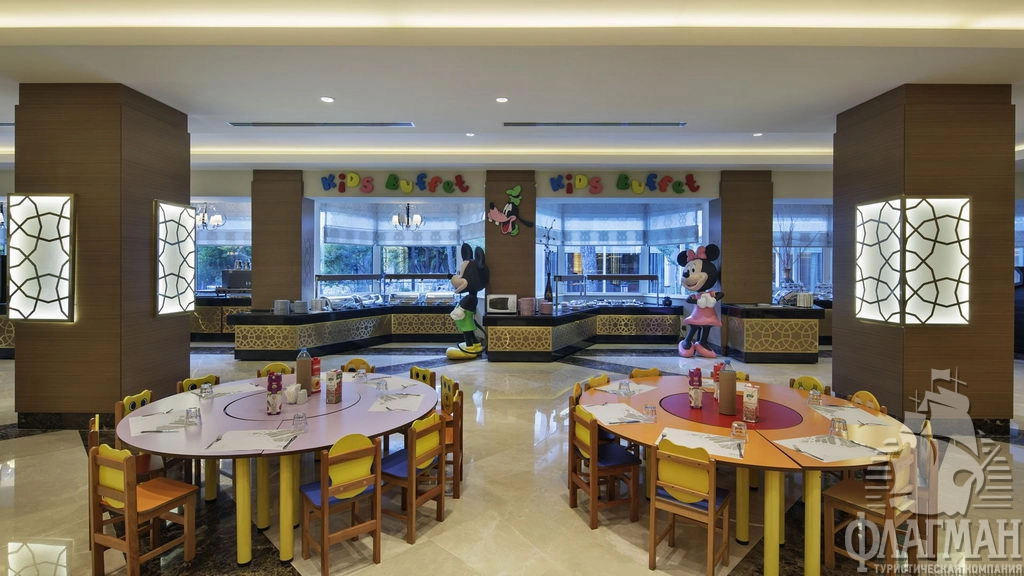 - рестораны a la carte: 5 (итальянский, рыбный, турецкий, мексиканский, дальневосточный – по предварительной записи, при проживании не менее 7 дней - посещение один раз в неделю бесплатно. При проживании менее 7 дней – плата за резервацию)