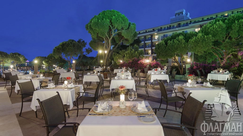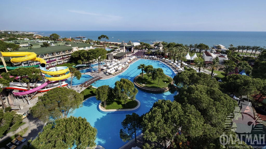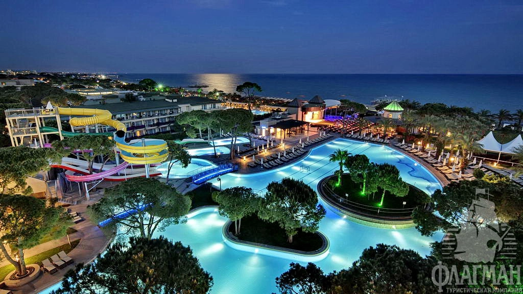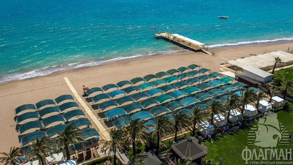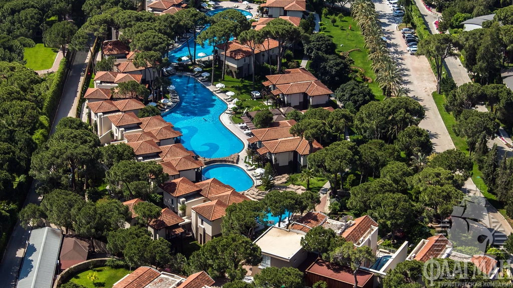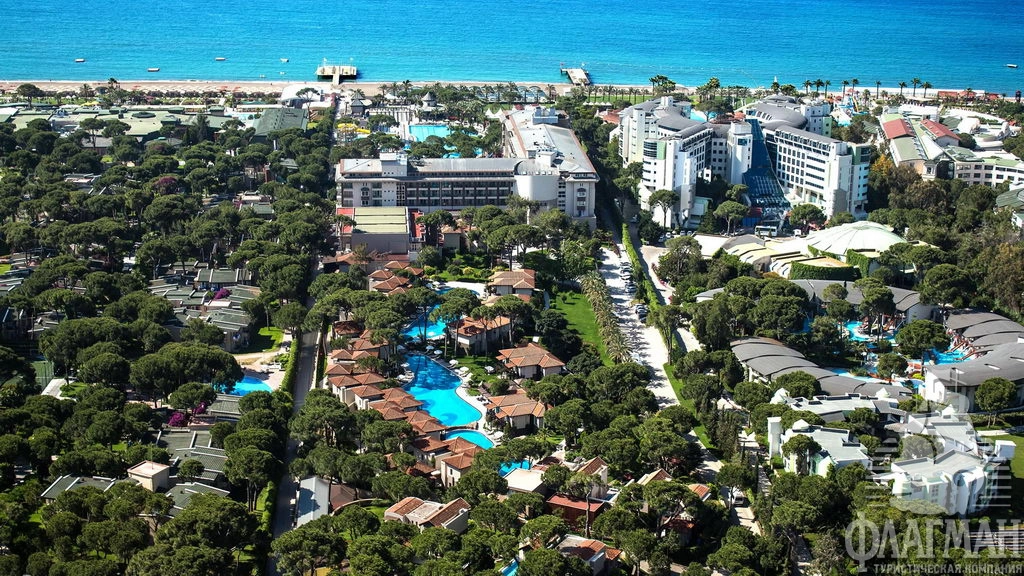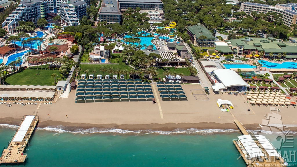 Расположен в 35 км от аэропорта, в 40 км от центра г. Анталья, в 4 км от поселка Белек, на берегу моря.