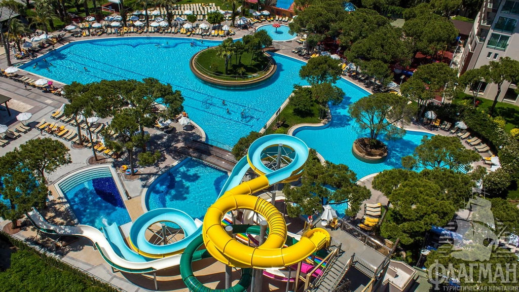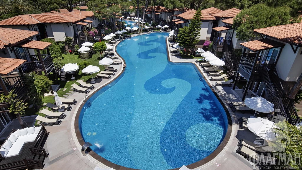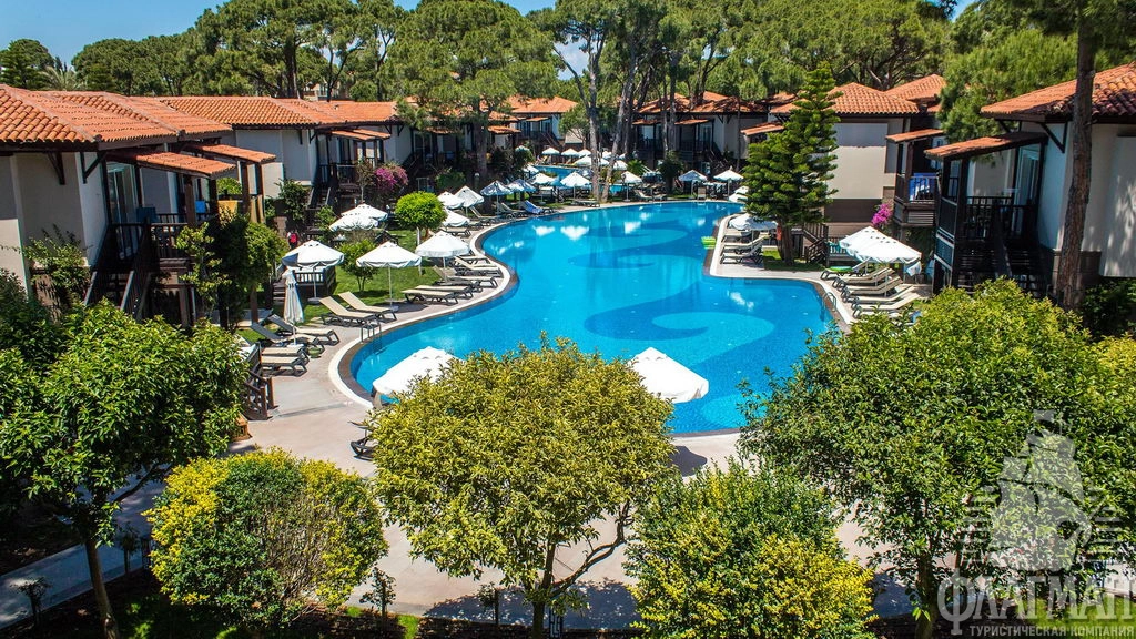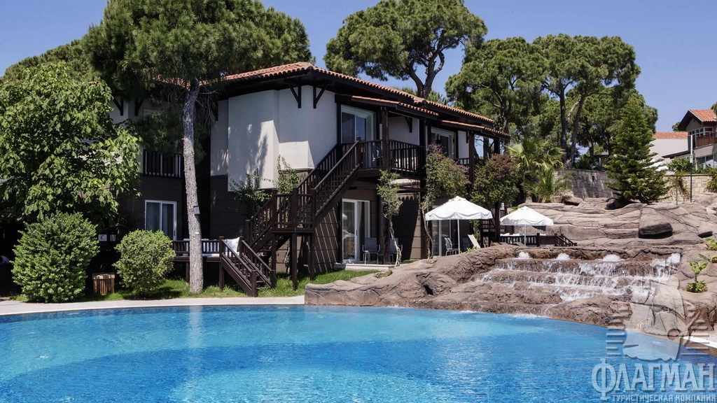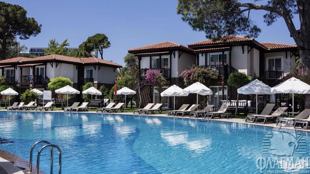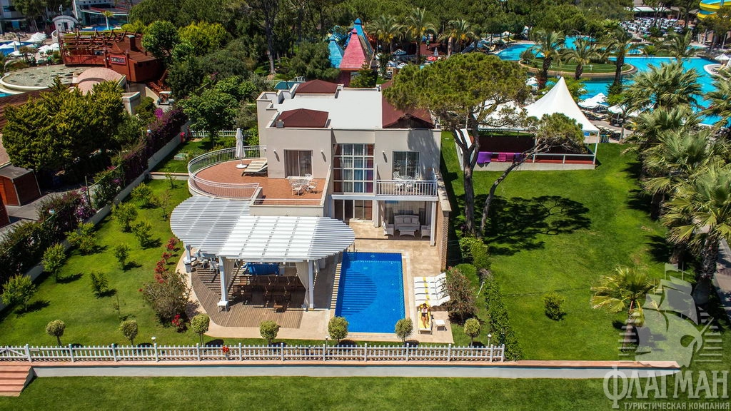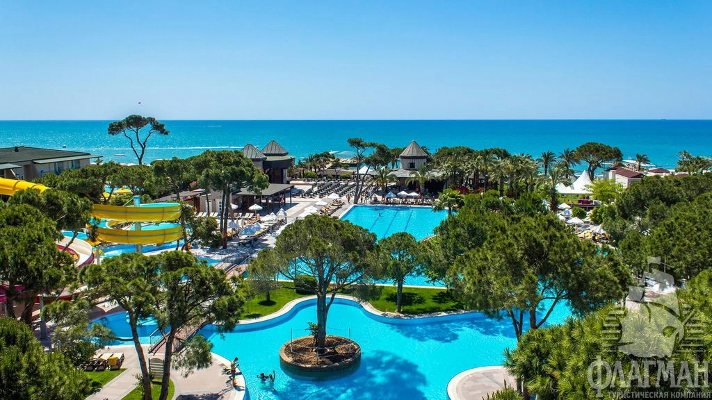 Расположен в 35 км от аэропорта, в 40 км от центра г. Анталья, в 4 км от поселка Белек, на берегу моря.