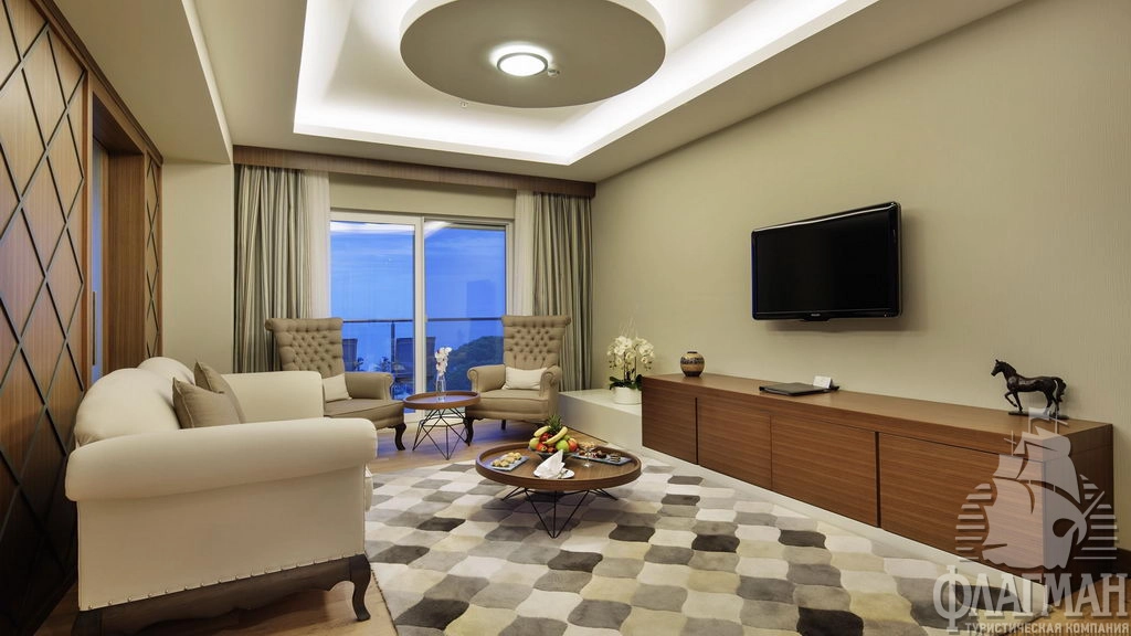 4 трехкомнатных King suite (2 спальни c дверью, 2 ванные комнаты, гостиная с мягкой мебелью, макс. 4 чел., 128 м2).