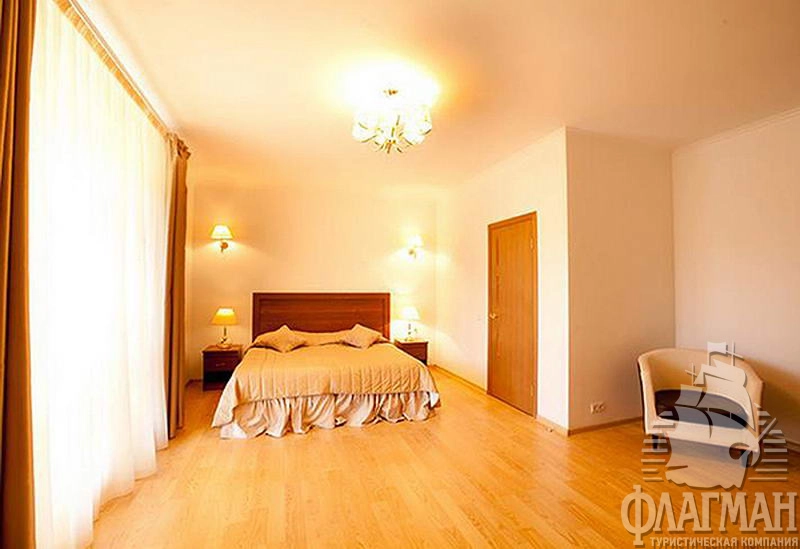 - 2-местный 3-комнатный "Яхонты", корп. 1 (макс. 2+1 чел., телевизор, душ, умывальник, туалет, биде, терраса, мини-бар, сауна, одна большая кровать и две раздельные). Доп. место - еврораскладушка.
