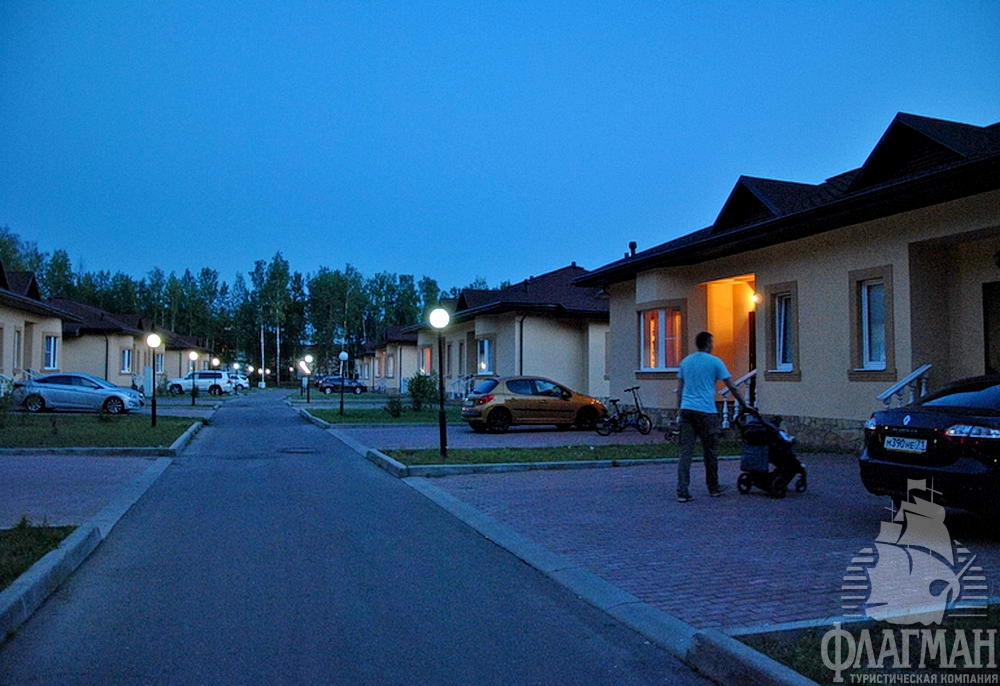 Представляет собой несколько 3-этажных жилых корпусов на 96 номеров и 29 коттеджей.
