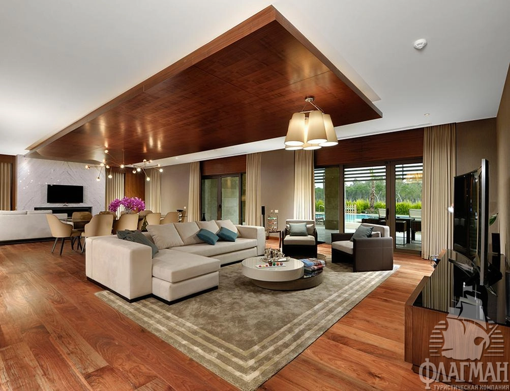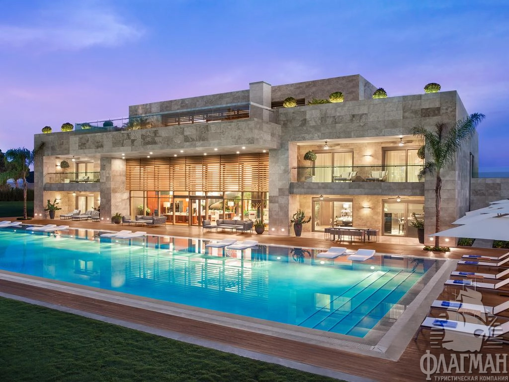 - 4 четырехкомнатных Carya Golf villa (с видом на гольф-поле, гостиная с мягкой мебелью, кухня, макси-бар, 3 спальни с дверью, 3 ванные, сауна, большая терраса (100 м2), собственный подогреваемый бассейн (120 м2), макс. 6 чел., 350 м2, VIP-сервис);
