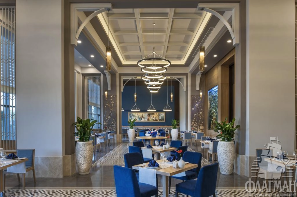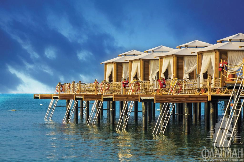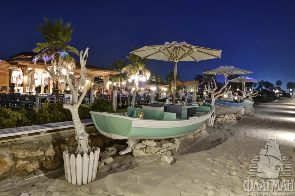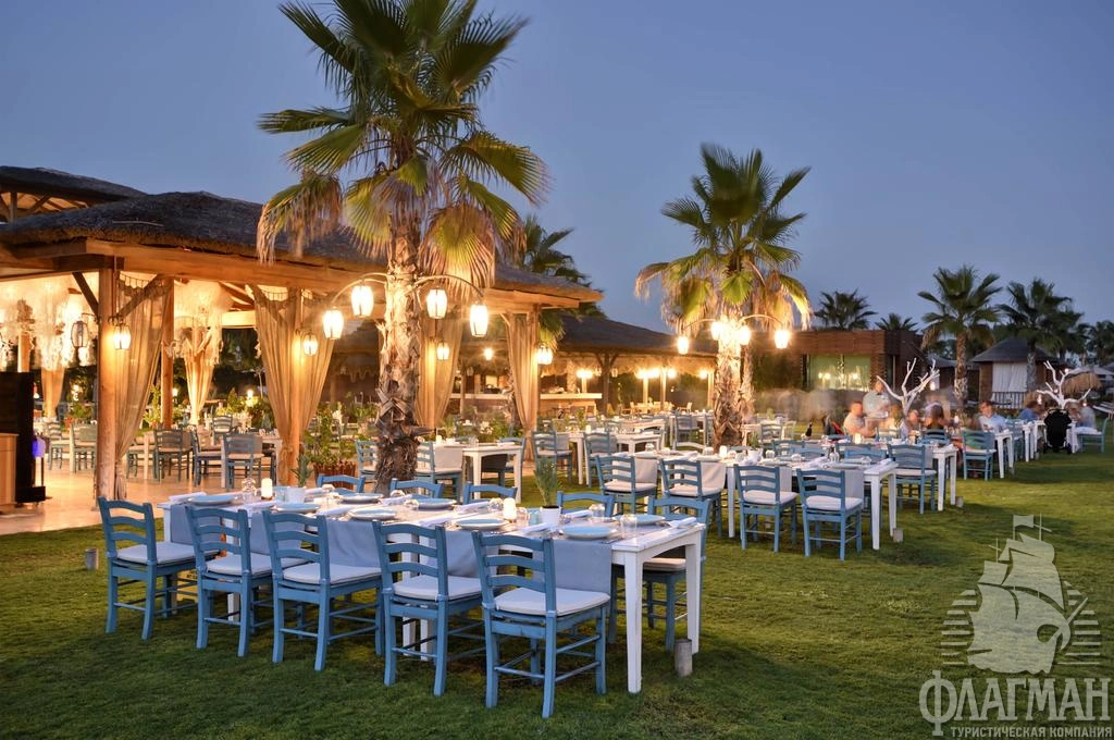 - рестораны a la carte: 6 (турецкий, итальянский, азиатский, рыбный, бразильский стейк-ресторан, рыбный ресторан на берегу моря – по предварительной записи, платно)