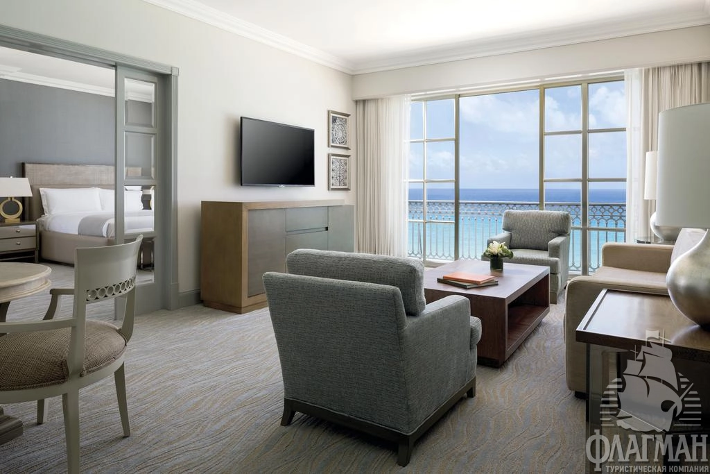 - Club One Bedroom Ocean View Suite (просторный номер с вестибюлем, плавно переходящим в гостиную, спальня с 1 кроватью king, номера расположены в северном или южном крыле здания, с частичным видом на пляж и море, доступ в клубный лаундж);
