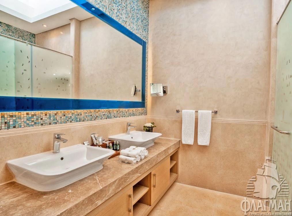 - Executive Family Suite (Sea View, верхний этаж, 170 м², гостиная +2 спальни, включая ванную комнату и балкон, макс. 4+2 или 5+1 чел.). Одна спальня с большой двуспальной кроватью, другая - с двумя односпальными кроватями.